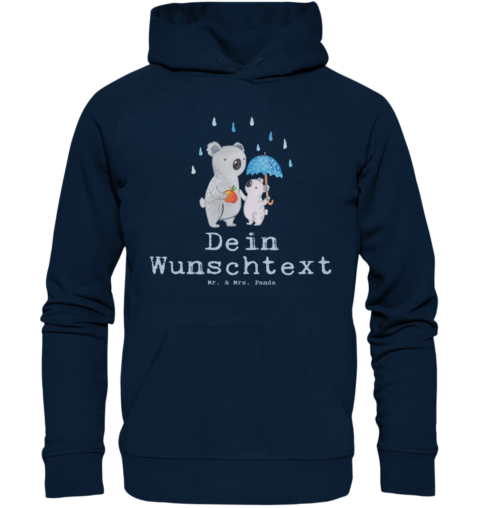 Der personalisierte Hoodie "Tagesvater mit Herz" von Mr. & Mrs. Panda ist das perfekte Geschenk für alle Tagesväter da draußen. Er ist nicht nur stylisch, sondern auch super bequem und aus hochwertiger Bio-Baumwolle gefertigt, die sich angenehm auf der Haut anfühlt. Der niedliche Koala, der mit einem kleinen Koala-Kind unter einem Regenschirm steht, bringt ein Lächeln ins Gesicht und sorgt dafür, dass dieser Hoodie ganz besonders wird. Mit dem originellen Spruch "Du bist nur ein halber Mensch, wenn du kein Tagesvater bist" zeigt er, wie wertvoll Tagesväter für die Gesellschaft sind.