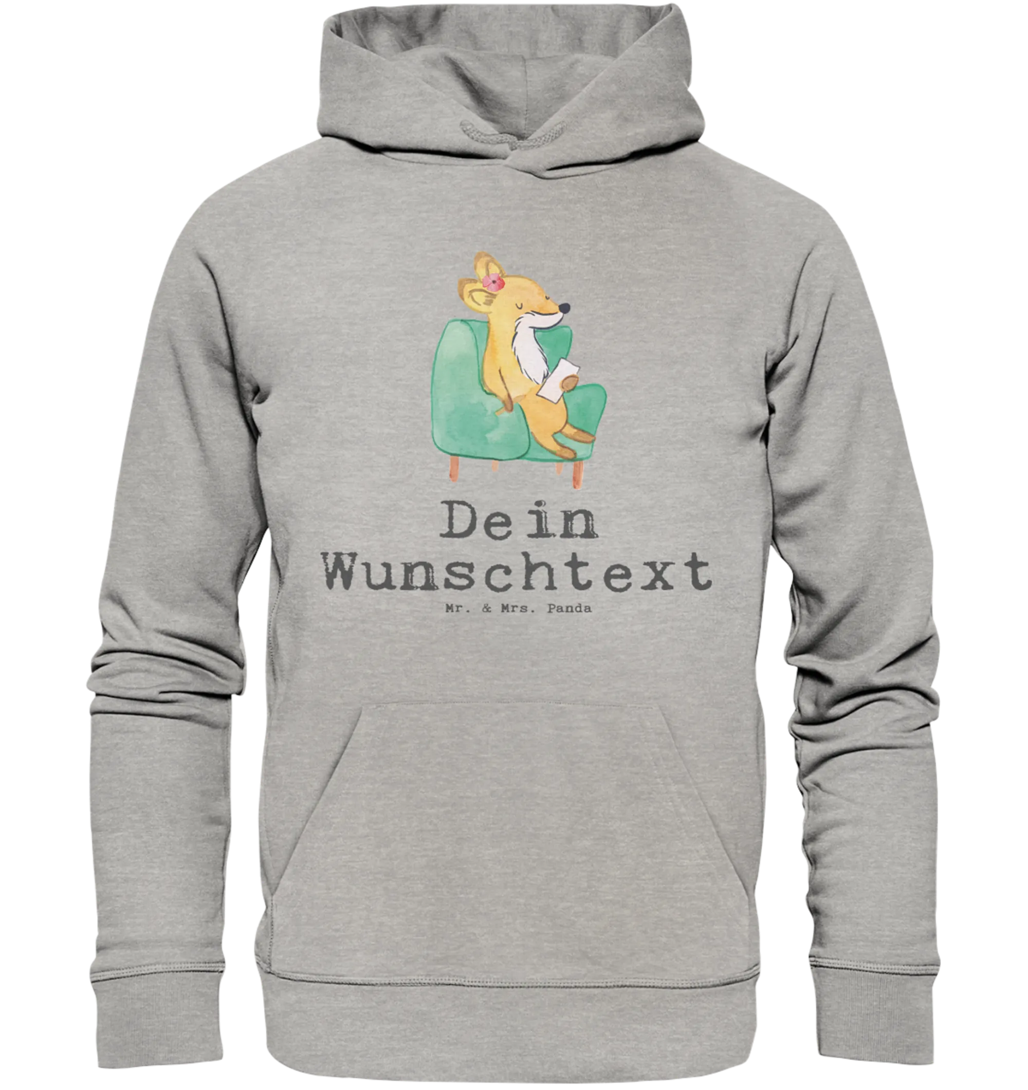 Kuschel dich ein in den personalisierten Hoodie von Mr. & Mrs. Panda! Aus 85 % Bio-Baumwolle und 15 % recyceltem Polyester gefertigt, sorgt er für ein unvergleichliches Tragegefühl. Mit einem Gewicht von 350 g/m² fühlt er sich leicht, aber dennoch robust an. Die gebürstete Innenseite macht ihn besonders weich und angenehm zu tragen. Das moderne Design, inklusive normaler Passform und langärmeligen, eingesetzten Ärmeln, lässt sich wunderbar kombinieren. Bei diesem Hoodie hast du die Wahl: Lass ihn mit deinem persönlichen Wunschtext oder Namen bedrucken. Ideal für Freizeitaktivitäten, beim Sport oder einfach zum Entspannen auf der Couch. Pflege deine Wäsche bei 30 Grad und drehe ihn vorher auf links, um die Drucke zu schonen.