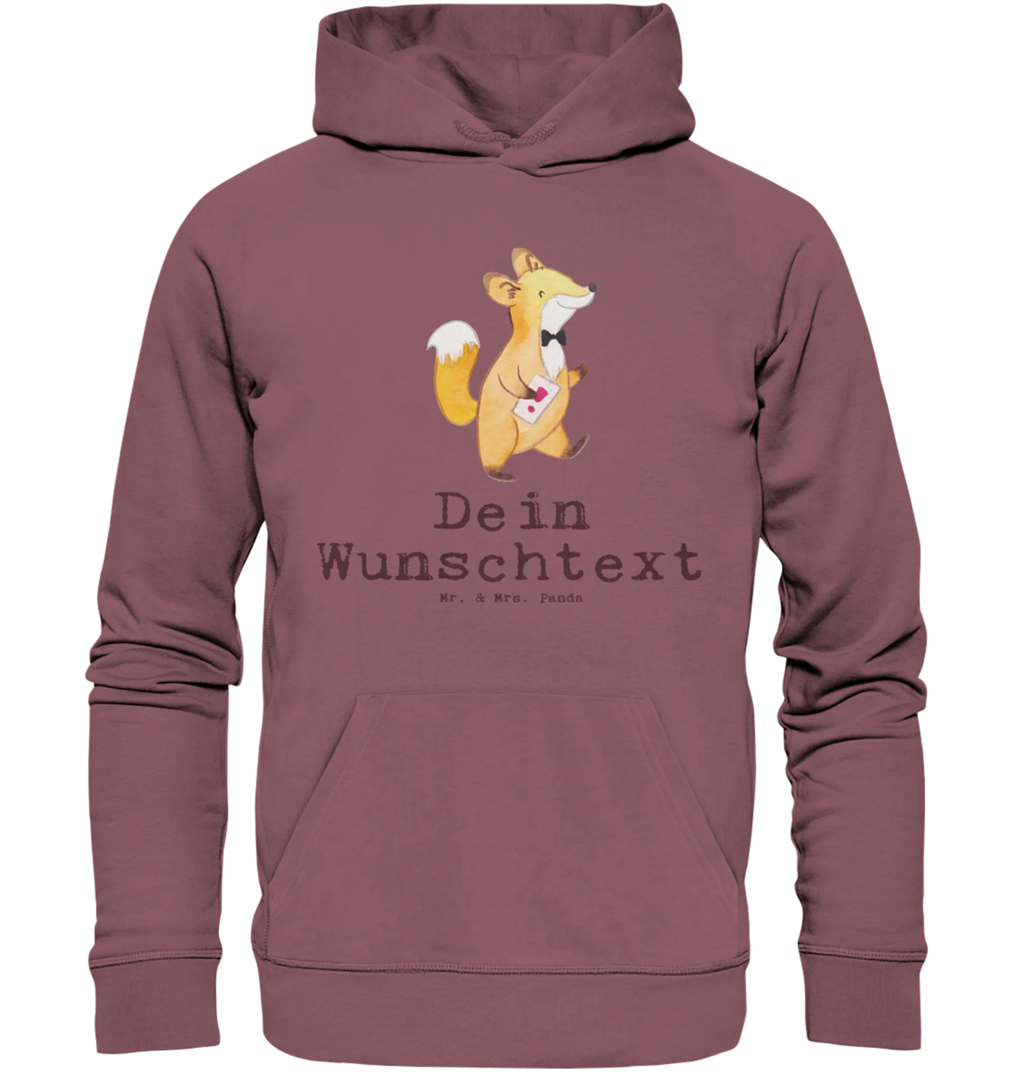Kuschel dich ein in den personalisierten Hoodie von Mr. & Mrs. Panda! Aus 85 % Bio-Baumwolle und 15 % recyceltem Polyester gefertigt, sorgt er für ein unvergleichliches Tragegefühl. Mit einem Gewicht von 350 g/m² fühlt er sich leicht, aber dennoch robust an. Die gebürstete Innenseite macht ihn besonders weich und angenehm zu tragen. Das moderne Design, inklusive normaler Passform und langärmeligen, eingesetzten Ärmeln, lässt sich wunderbar kombinieren. Bei diesem Hoodie hast du die Wahl: Lass ihn mit deinem persönlichen Wunschtext oder Namen bedrucken. Ideal für Freizeitaktivitäten, beim Sport oder einfach zum Entspannen auf der Couch. Pflege deine Wäsche bei 30 Grad und drehe ihn vorher auf links, um die Drucke zu schonen.
