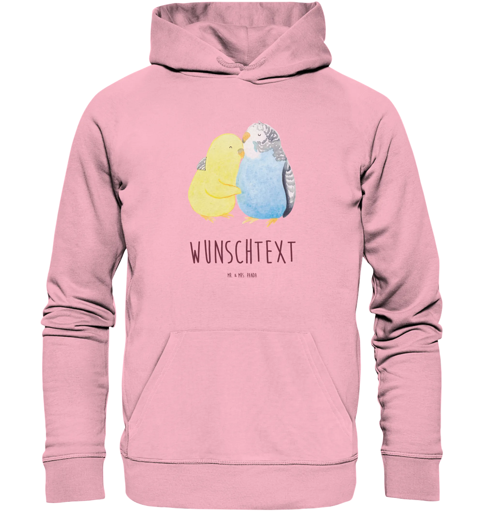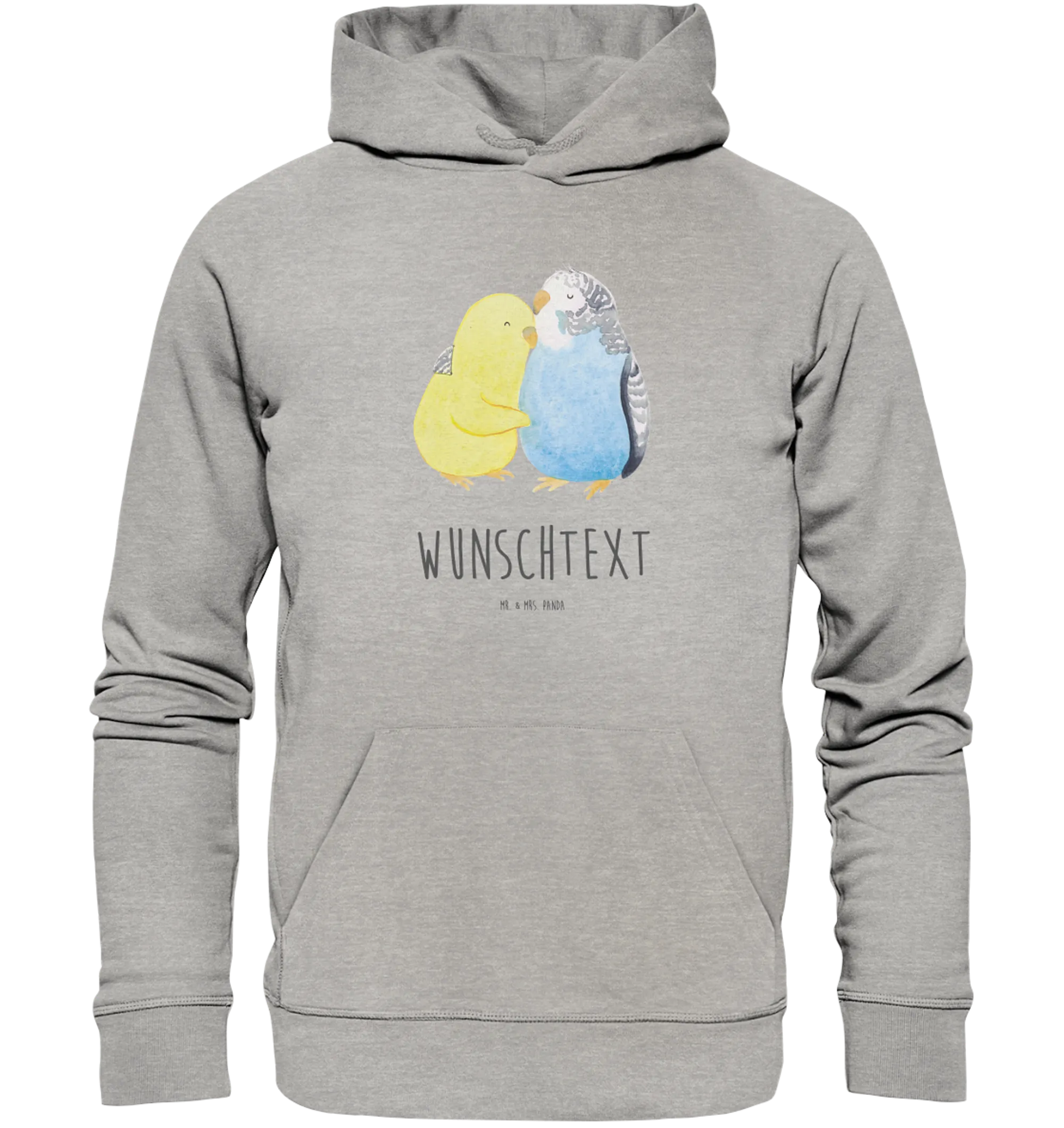 Der personalisierte Hoodie "Wellensittich Liebe" aus der Kollektion Liebe von Mr. & Mrs. Panda ist das perfekte Geschenk für Menschen, die ihre Zuneigung auf eine ganz besondere Art ausdrücken möchten. Dieser wunderschöne Kapuzenpullover aus flauschiger Bio-Baumwolle bietet nicht nur kuschelige Wärme, sondern auch eine Botschaft voller Liebe und Dankbarkeit. Mit dem Motiv eines liebevoll kuschelnden Pärchens von Wellensittichen in sanften Pastellfarben strahlt dieser Hoodie eine harmonische Atmosphäre aus, die Dein Herz höher schlagen lässt.