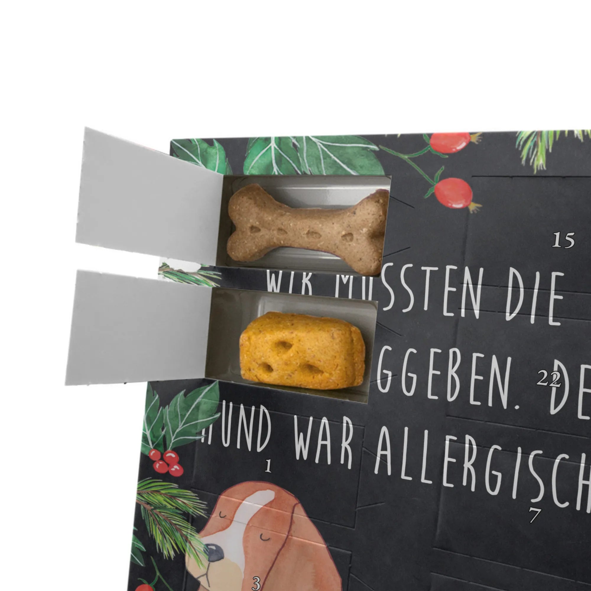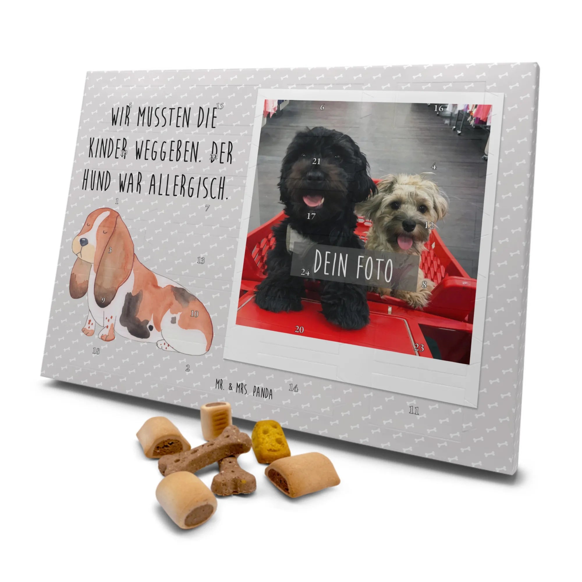 Der personalisierte Hunde Foto Adventskalender von Mr. & Mrs. Panda ist das perfekte Geschenk für Hunde-Liebhaber und Tierfreunde. Mit einem süßen Basset Hound Motiv und dem lustigen Spruch "Wir mussten die Kinder weggeben. Der Hund war allergisch." erfreust du dich nicht nur an einem wunderbaren Weihnachtszeitraum, sondern schaffst auch jeden Tag eine neue, kleine Freude für deinen geliebten Vierbeiner.