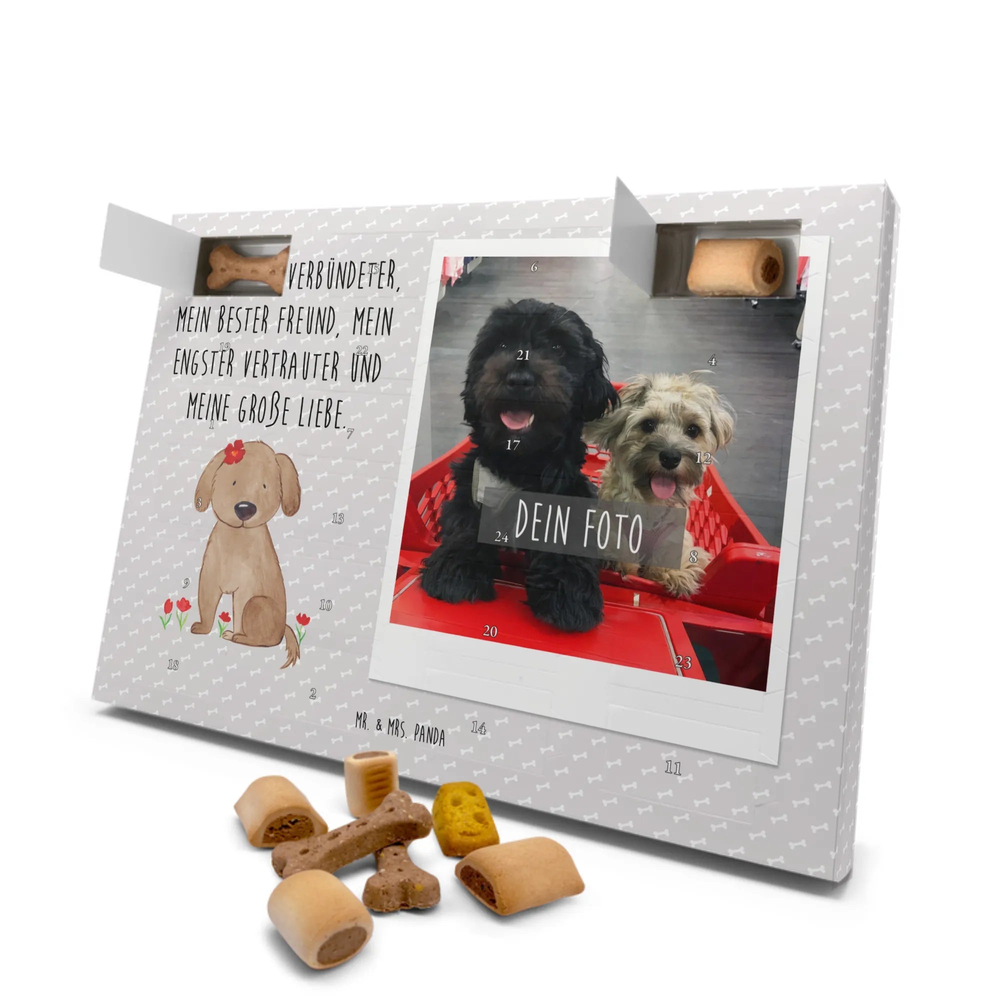 Der Personalisierte Hunde Foto Adventskalender von Mr. & Mrs. Panda ist das perfekte Geschenk für alle Hundeliebhaber, die ihren vierbeinigen Freunden eine besondere Freude machen möchten. Mit dem zauberhaften Motiv "Hund Hundedame" und der Möglichkeit, ein persönliches Foto deines geliebten Hundes einzufügen, wird dieser Adventskalender zu einem ganz besonderen Unikat!