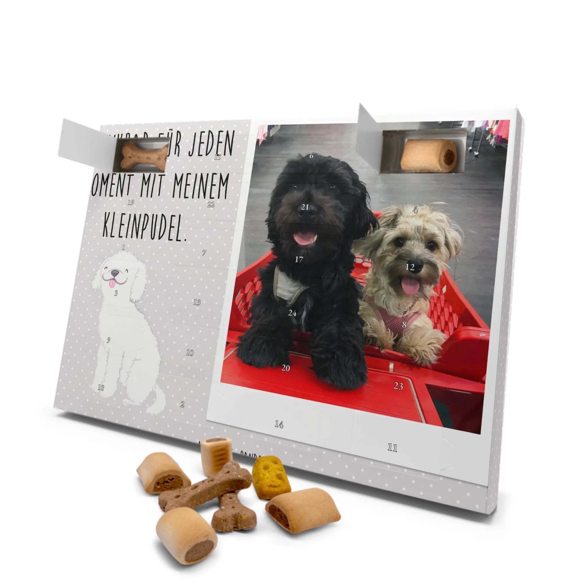Der personalisierte Hunde Foto Adventskalender "Kleinpudel Moment" von Mr. & Mrs. Panda ist ein zauberhaftes Geschenk für alle Hundeliebhaber, insbesondere für stolze Kleinpudel-Besitzer. Dieser Adventskalender bringt jeden Tag im Dezember eine neue Portion Freude für dich und deinen vierbeinigen Freund. Mit jedem Türchen erwartet dich ein köstlicher Premium-Hundekuchen in vier verschiedenen Sorten – Beef Cake Mix, Mini Knabberknochen, Käse Snack und Panino Röllchen. Ideal, um die Vorfreude auf das Weihnachtsfest zu steigern!