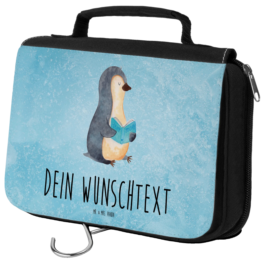 Personalisierter Kulturbeutel Pinguin Buch - Eisblau