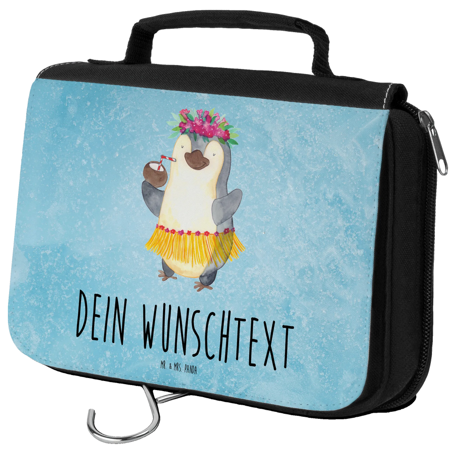 Personalisierter Kulturbeutel Pinguin Kokosnuss - Eisblau