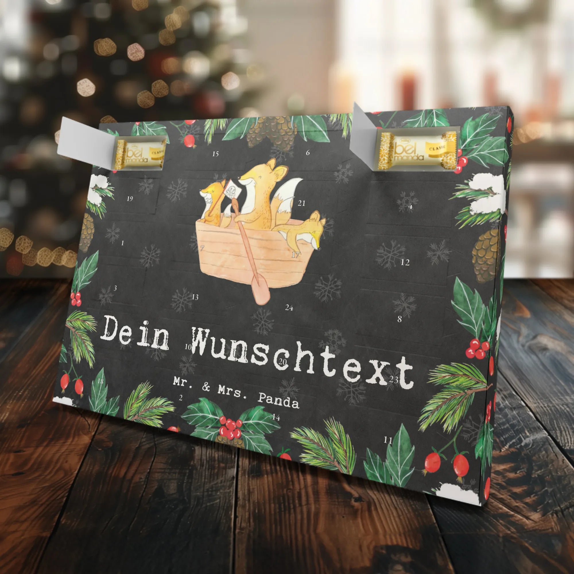 Personalisierter Marzipan Adventskalender Fuchs Kanufahren - Schwarz