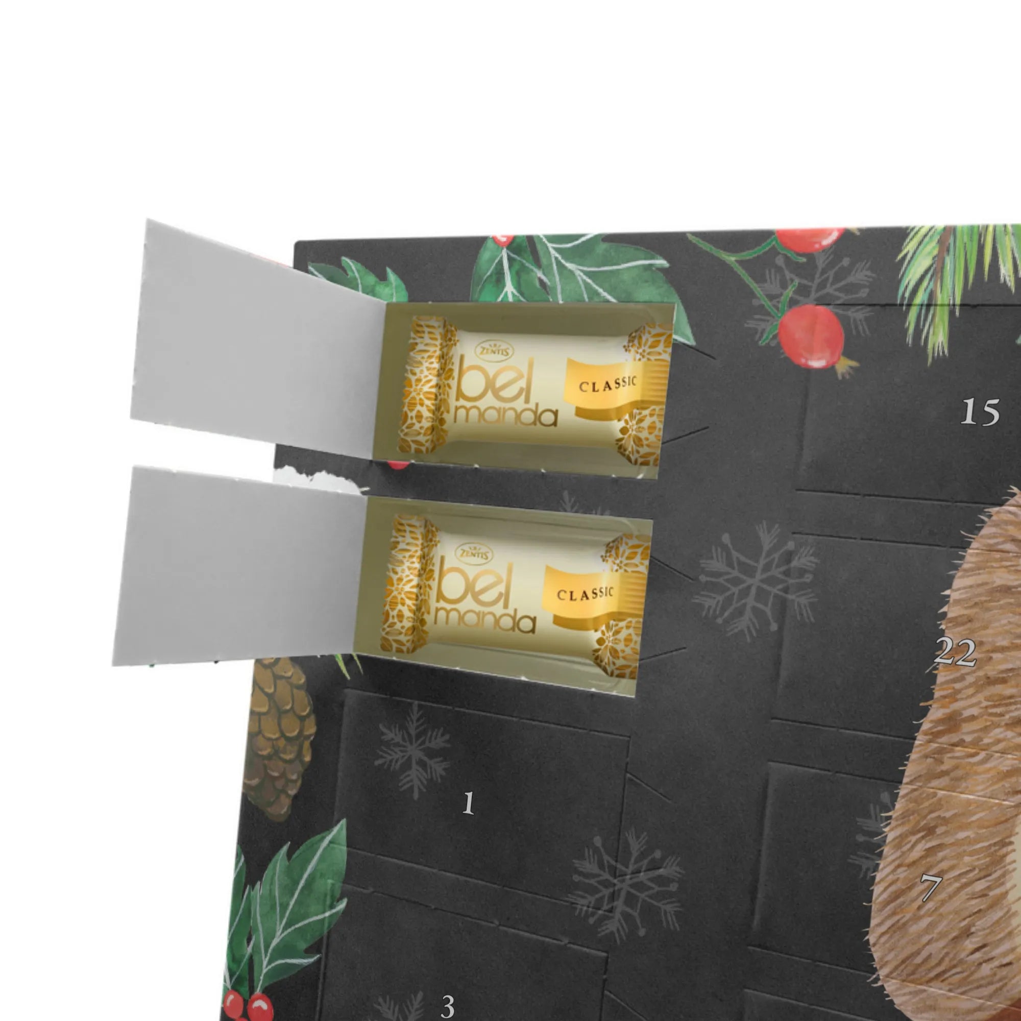 Mit seinem entzückenden Design eines kleinen Igels, der entspannt um das Lagerfeuer sitzt und einen köstlichen Apfel über dem offenen Feuer grillt, weckt dieser Adventskalender die warmen Erinnerungen an unbeschwerte Zeiten und lädt zum Schmunzeln ein. Jeder Tag im Dezember wird mit 24 einzeln verpackten Edelmarzipan Pralinés versüßt, die nicht nur lecker sind, sondern auch das Herz höher schlagen lassen.