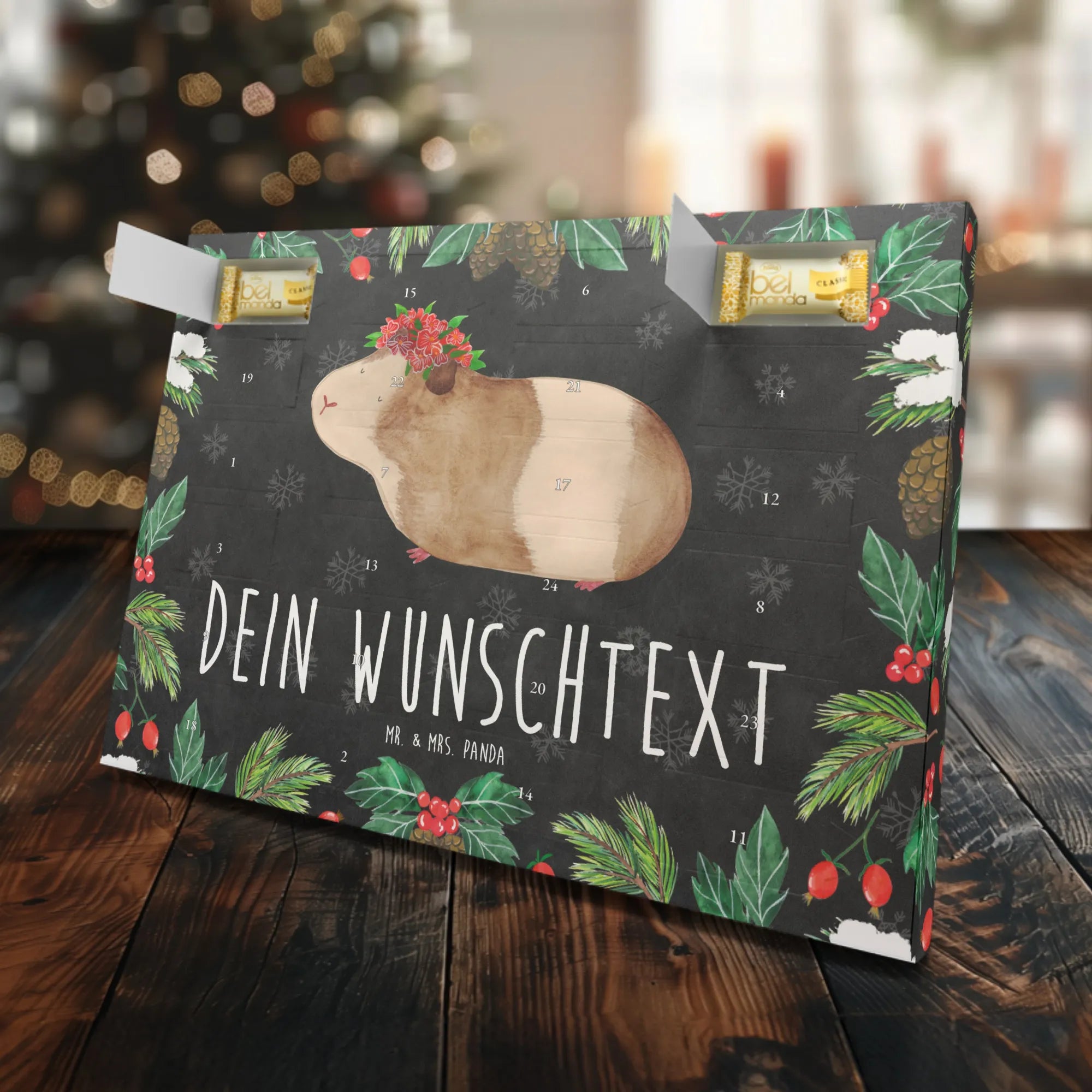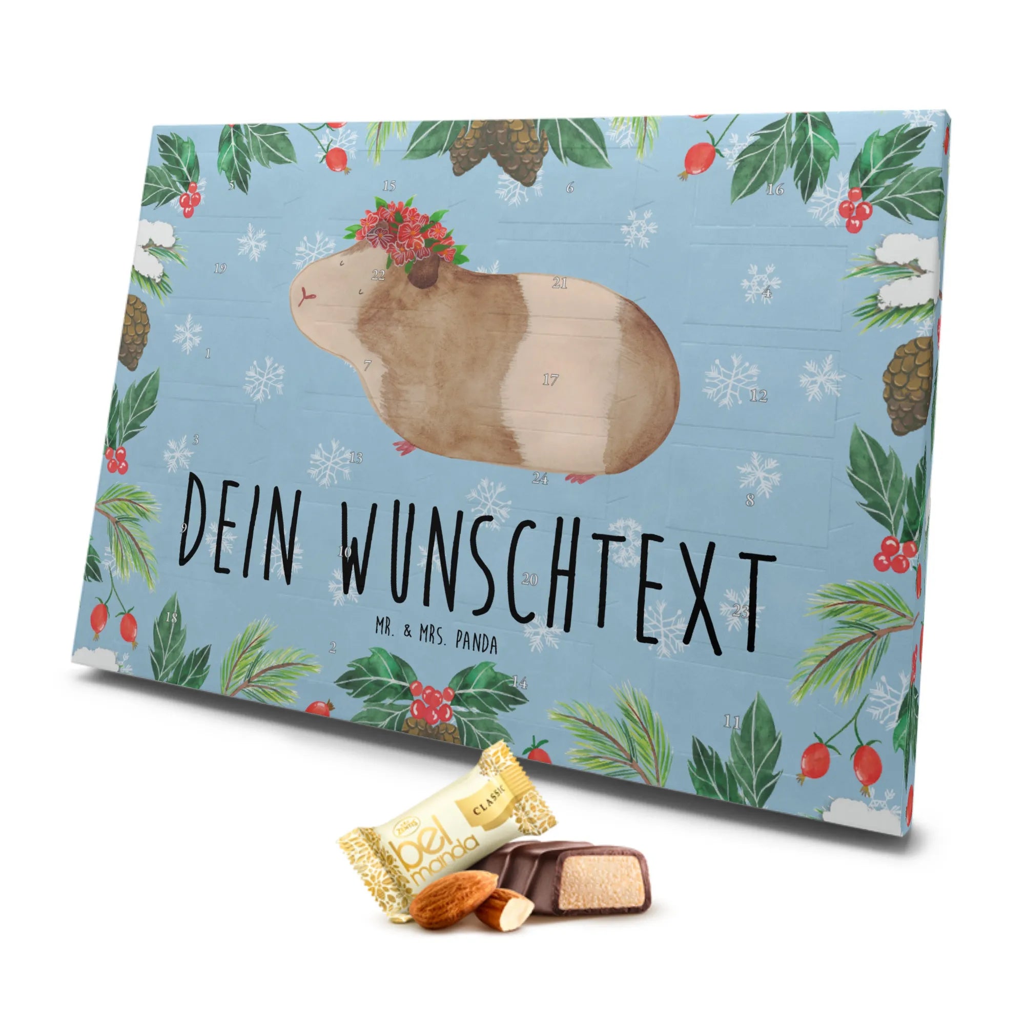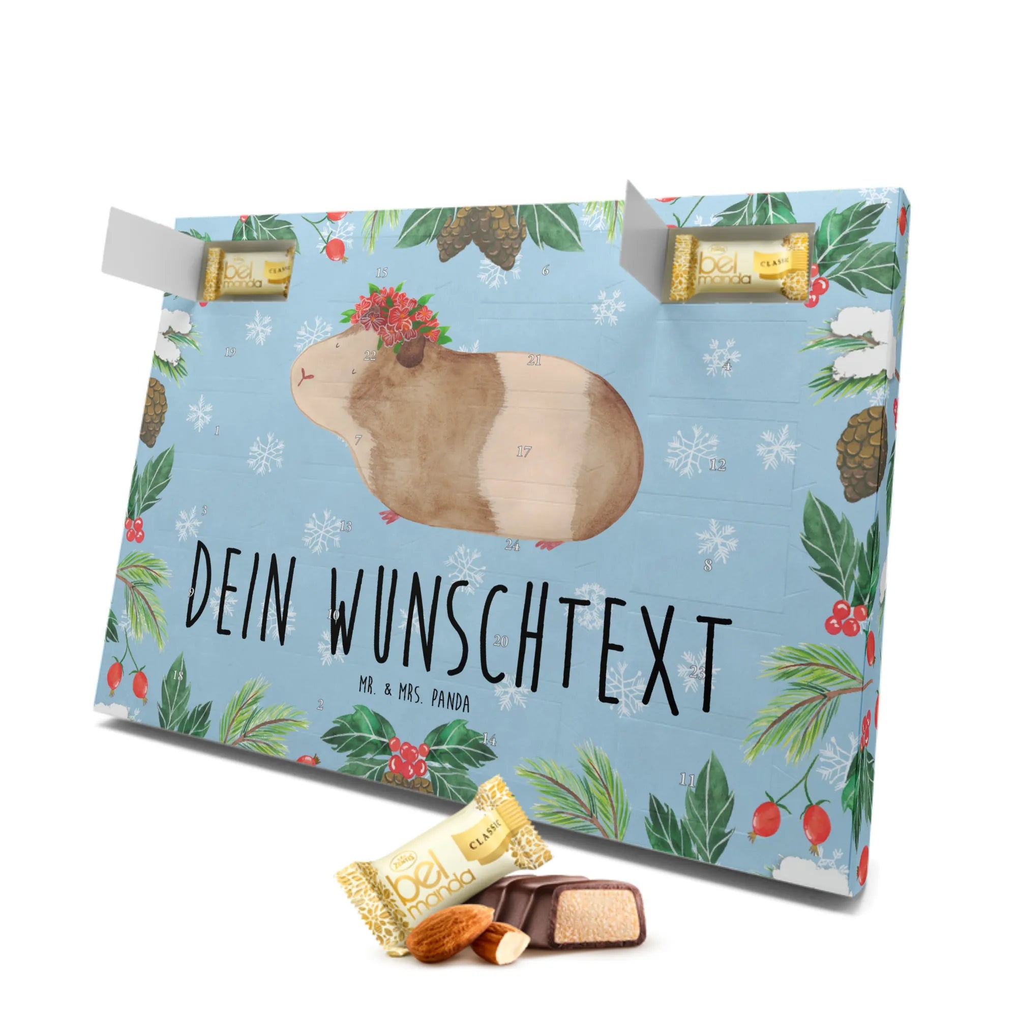 Der personalisierte Marzipan Adventskalender mit dem süßen Meerschweinchen-Motiv ist das perfekte Geschenk für alle, die die festliche Jahreszeit lieben und sich etwas ganz Besonderes wünschen. Egal ob für Freunde, Familie oder Kollegen, dieser Kalender sorgt für gute Laune und süße Momente in der Adventszeit!
