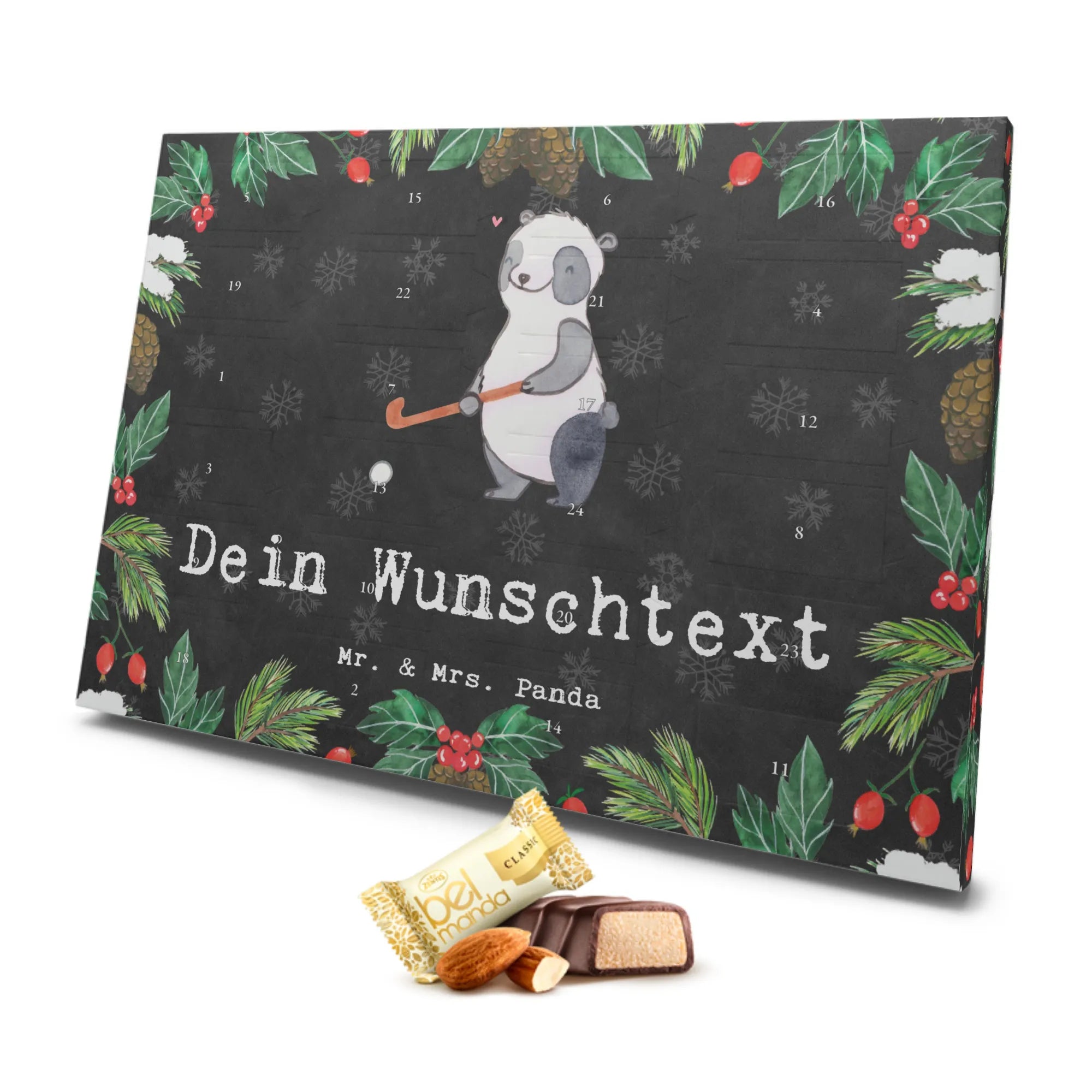 Personalisierter Marzipan Adventskalender Panda Hockey spielen - Schwarz