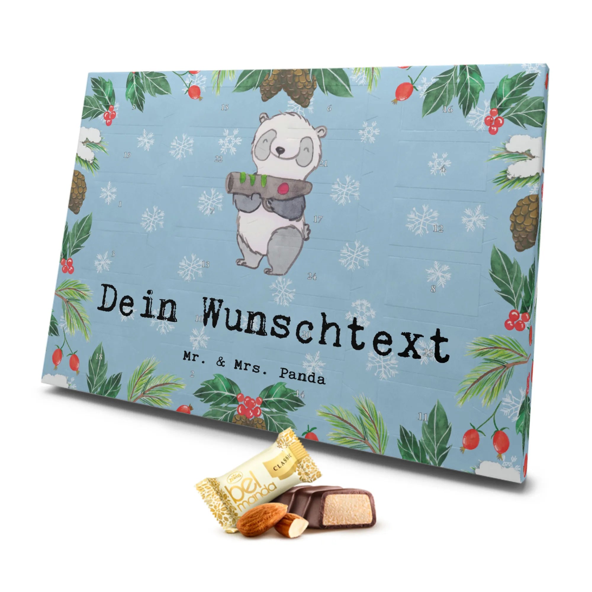 Der personalisierte Marzipan Adventskalender "Panda LaserTag Medizin" von Mr. & Mrs. Panda ist das perfekte Geschenk für alle Sportbegeisterten und Hobby-Fanatikern. Dieser einzigartige Adventskalender bringt nicht nur Vorfreude auf die Weihnachtszeit, sondern auch 24 leckere, einzeln verpackte Edelmarzipan Pralinés, die das Herz höher schlagen lassen.
