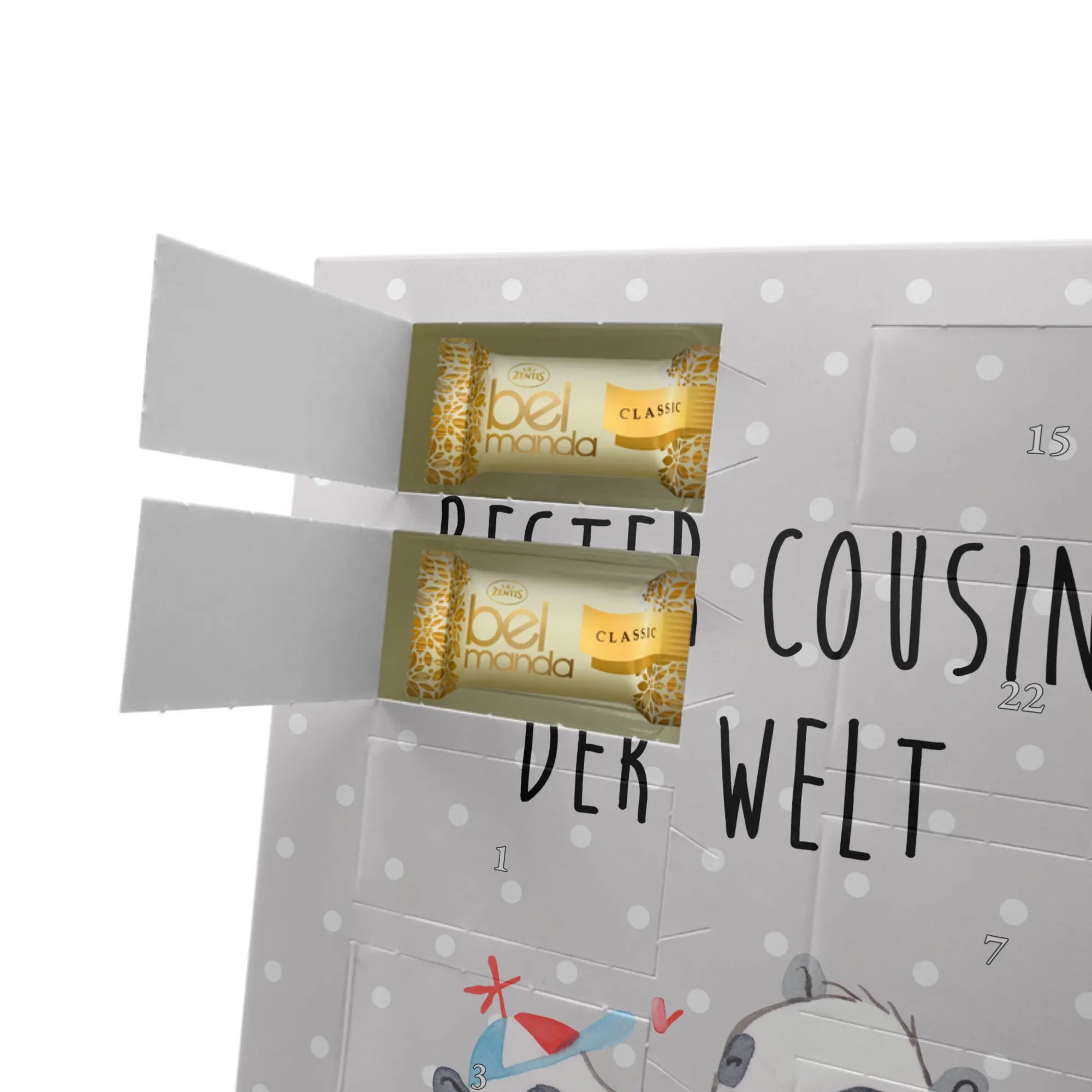 Personalisierter Marzipan Foto Adventskalender Panda Bester Cousin der Welt