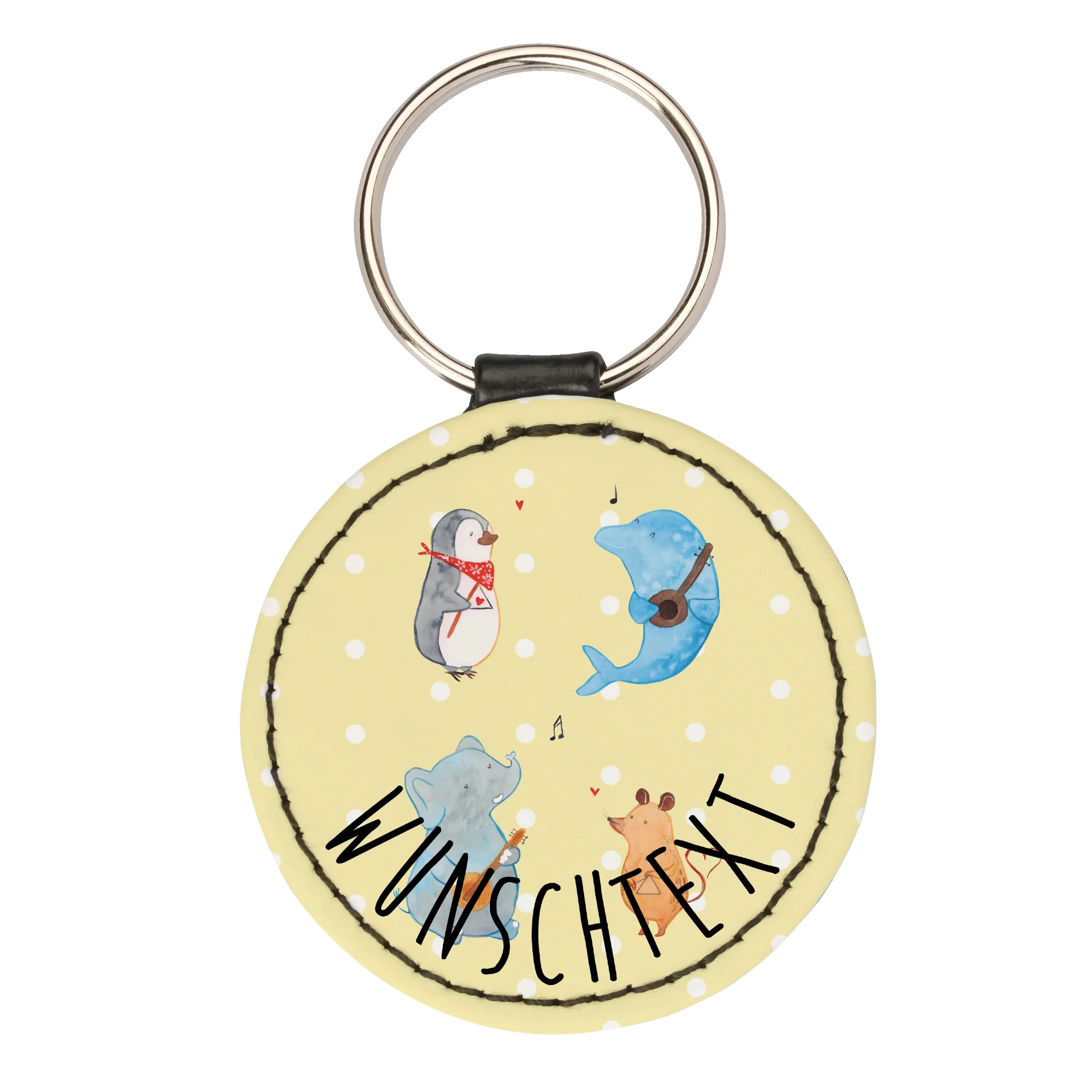 Der personalisierte Schlüsselanhänger mit dem bezaubernden Big Band Motiv aus der Small World Kollektion von Mr. & Mrs. Panda ist das perfekte Geschenk für Musikliebhaber und kleine Glücksbringer. Mit seinen fröhlichen Tiermotiven – einem Pinguin, einer Maus, einem Delfin und einem Elefanten – bringt dieser Schlüsselanhänger Schwung in deinen Alltag. Jeder dieser kleinen Musikkünstler ist liebevoll handgezeichnet und spielt seine Melodien in festlichen Kostümen, die dir ein Lächeln ins Gesicht zaubern. Gerade an besonderen Anlässen wie Geburtstagen, Weihnachten oder einfach als Aufmunterung für Freunde und Familie ist dieser Schlüsselanhänger eine tolle Wahl.