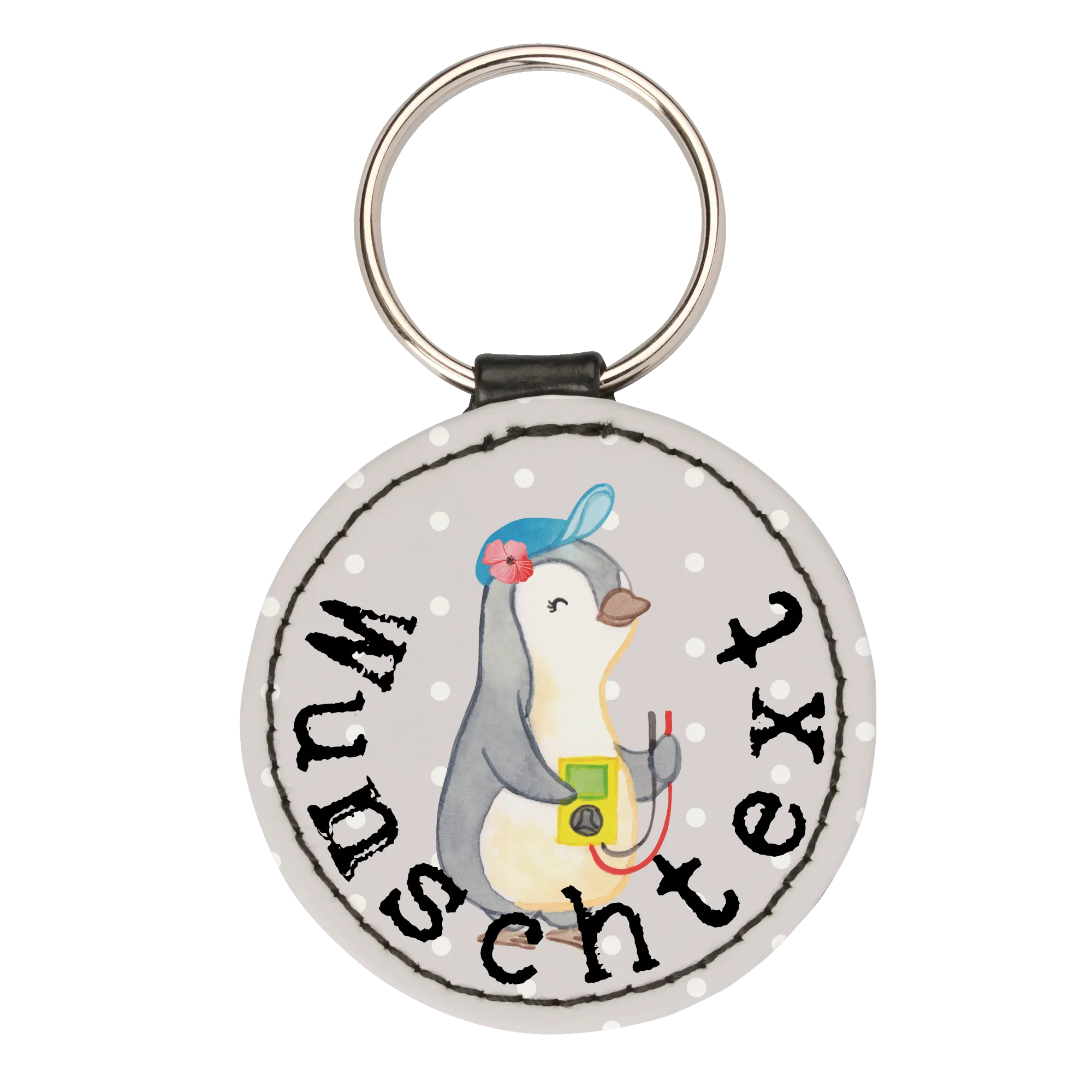 Der personalisierte Schlüsselanhänger "Elektrikerin mit Herz" von Mr. & Mrs. Panda ist das perfekte Geschenk für jede Elektrikerin, die ihren Beruf mit Herzblut ausübt. Dieser niedliche Schlüsselanhänger wird aus hochwertigem Premium Kunstleder gefertigt und ist nicht nur ein praktisches Accessoire, sondern auch ein kleiner Glücksbringer, der die Trägerin jeden Tag begleitet und an ihre Leidenschaft erinnert.