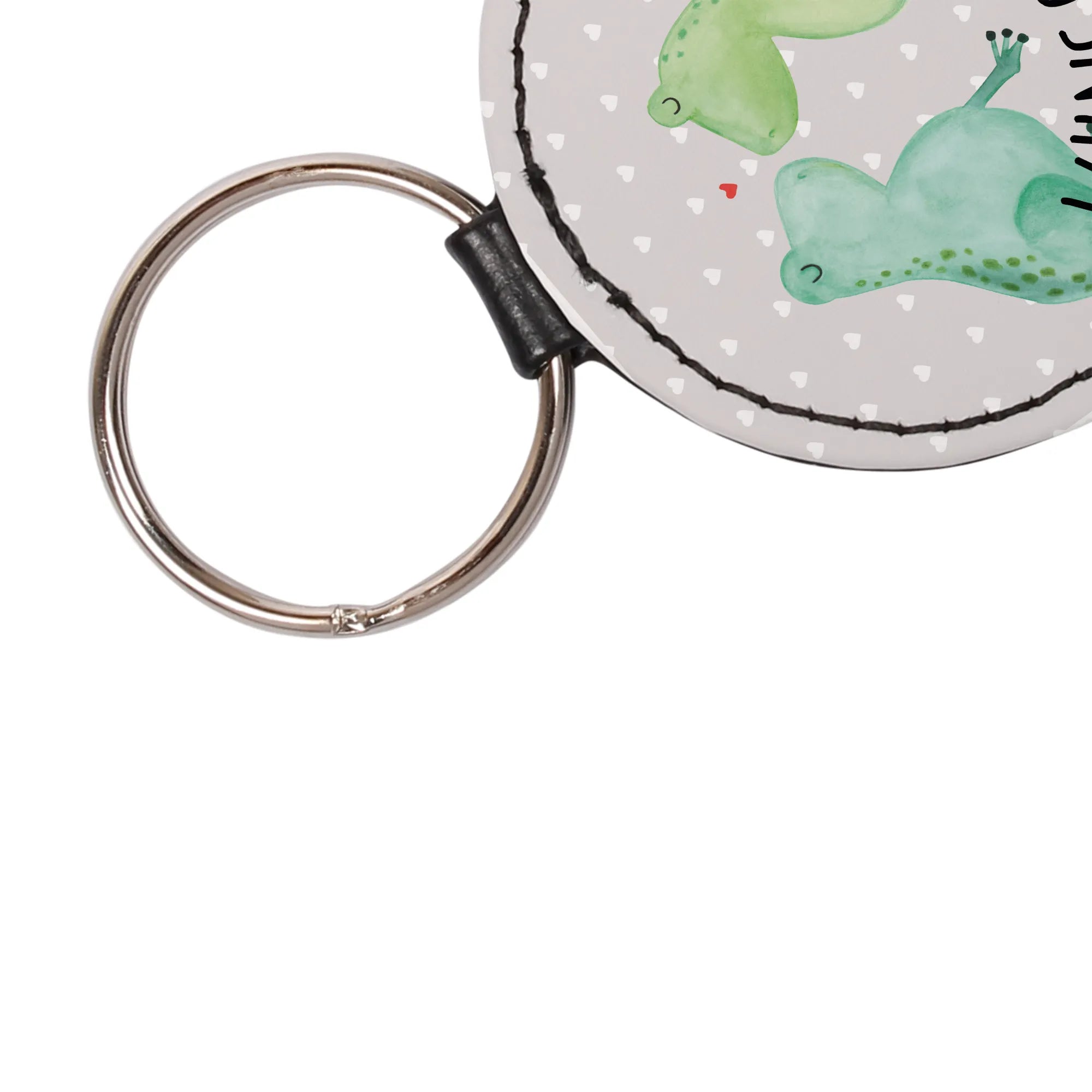 Entdecke den perfekten personalisierten Schlüsselanhänger Frosch Liebe aus der Sammlung Liebe von Mr. & Mrs. Panda. Dieser wunderschöne Schlüsselanhänger ist nicht nur ein praktisches Accessoire für deinen Schlüsselbund, sondern auch ein einzigartiger Rückzugsort, der dir und deinen Liebsten Glück und Geborgenheit schenkt. Mit seinem süßen Motiv, zwei verliebten Fröschen und einem rotem Herz, bringt er die Botschaft "Dank dir muss ich keine Frösche mehr Küssen, denn ich habe meinen Traumprinzen gefunden" zu dir.