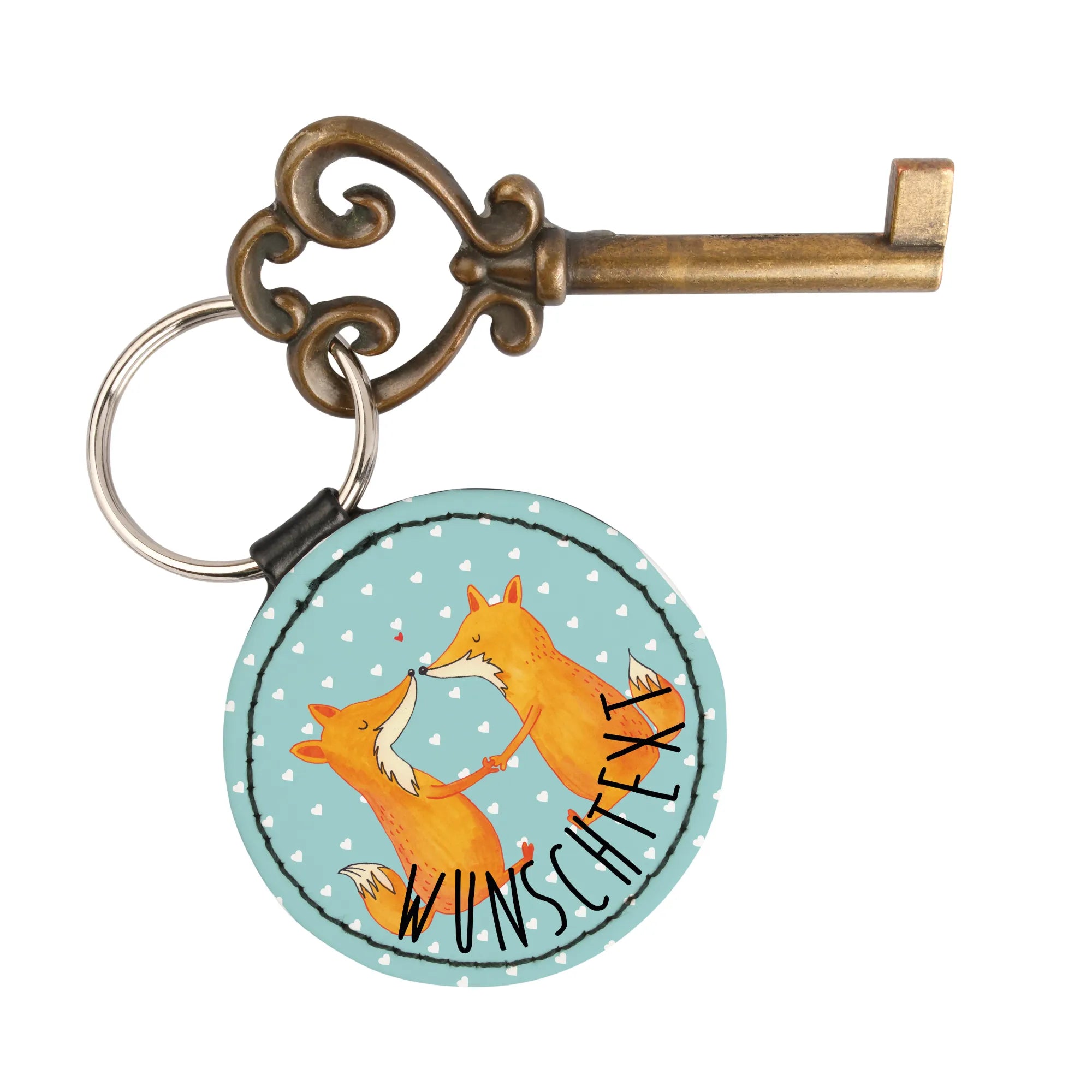 Entdecke den perfekten personalisierten Schlüsselanhänger mit dem zauberhaften Motif Füchse Liebe aus der Fuchs Kollektion von Mr. & Mrs. Panda. Dieser wunderschöne Schlüsselanhänger wird mit deinem Wunschtext oder Wunschnamen bedruckt und eignet sich hervorragend als persönliches Geschenk für deinen Partner, deine Freundin oder deinen Ehemann. Hast du schon mal Liebe auf den ersten Blick erlebt? Mit unseren zwei süßen Füchsen, die Händchen haltend strahlen, wirst du dieses Gefühl wiederentdecken.