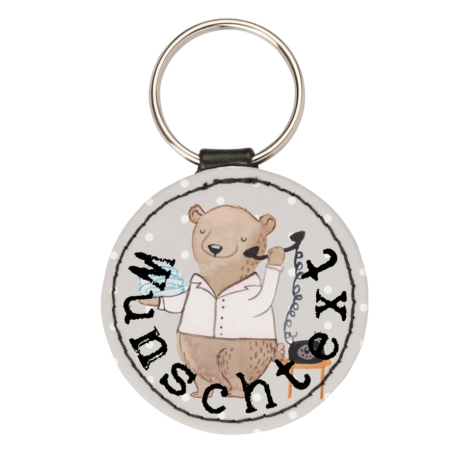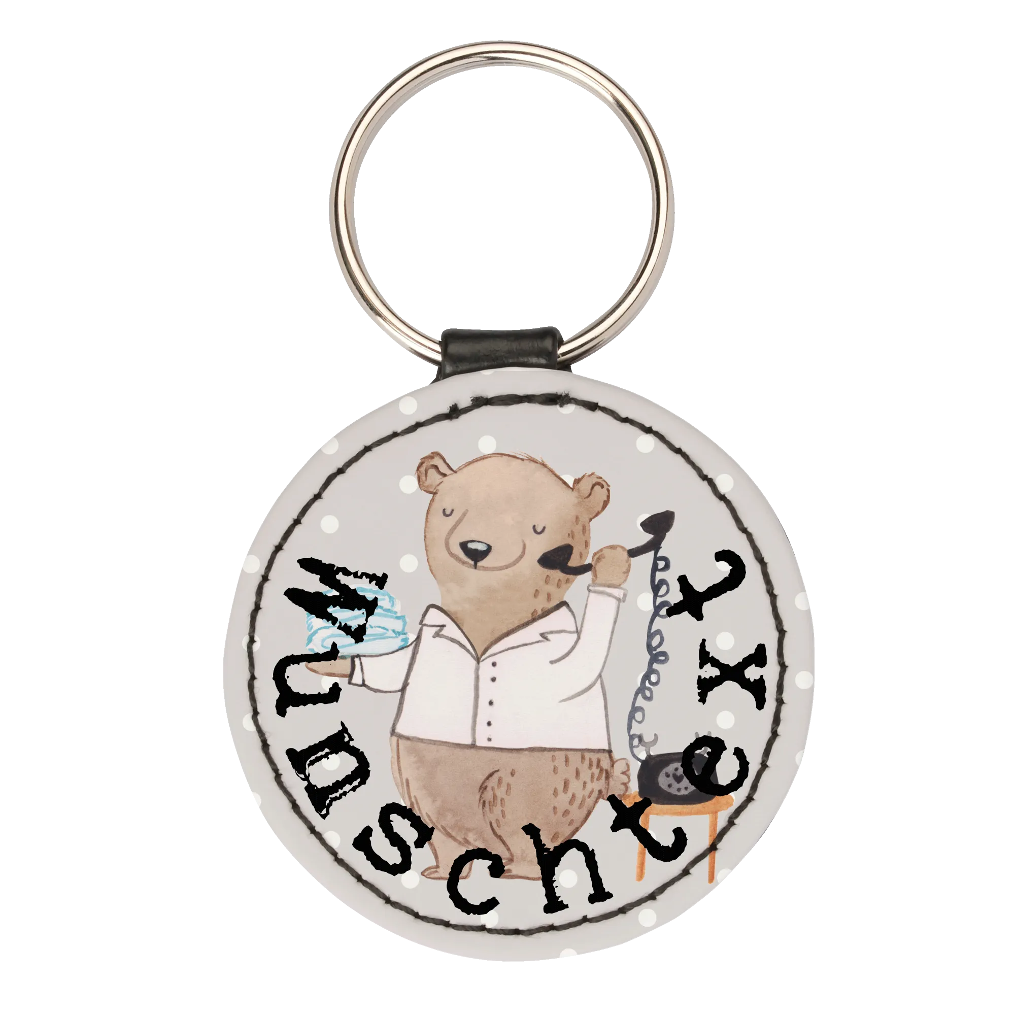 Entdecke unseren personalisierten Schlüsselanhänger "Hotelfachmann mit Herz" aus der besonderen Kollektion "Berufe" von Mr. & Mrs. Panda! Dieser süße Schlüsselanhänger ist nicht nur ein schönes Accessoire, sondern auch ein ganz persönliches Geschenk für alle Hotelfachleute, die den Service lieben und die Menschen um sich rum schätzen. Mit einer charmanten Darstellung eines Bären, der in der einen Hand ein Telefon und in der anderen frische Handtücher hält, bringt dieser Anhänger garantiert ein Lächeln in den Alltag deines Lieblingshotelfachmanns. Der Spruch "Du bist nur ein halber Mensch, wenn du kein Hotelfachmann bist" macht den Anhänger zu einem witzigen und zugleich liebevollen Statement, das jeden Hotelfachmann stolz macht.