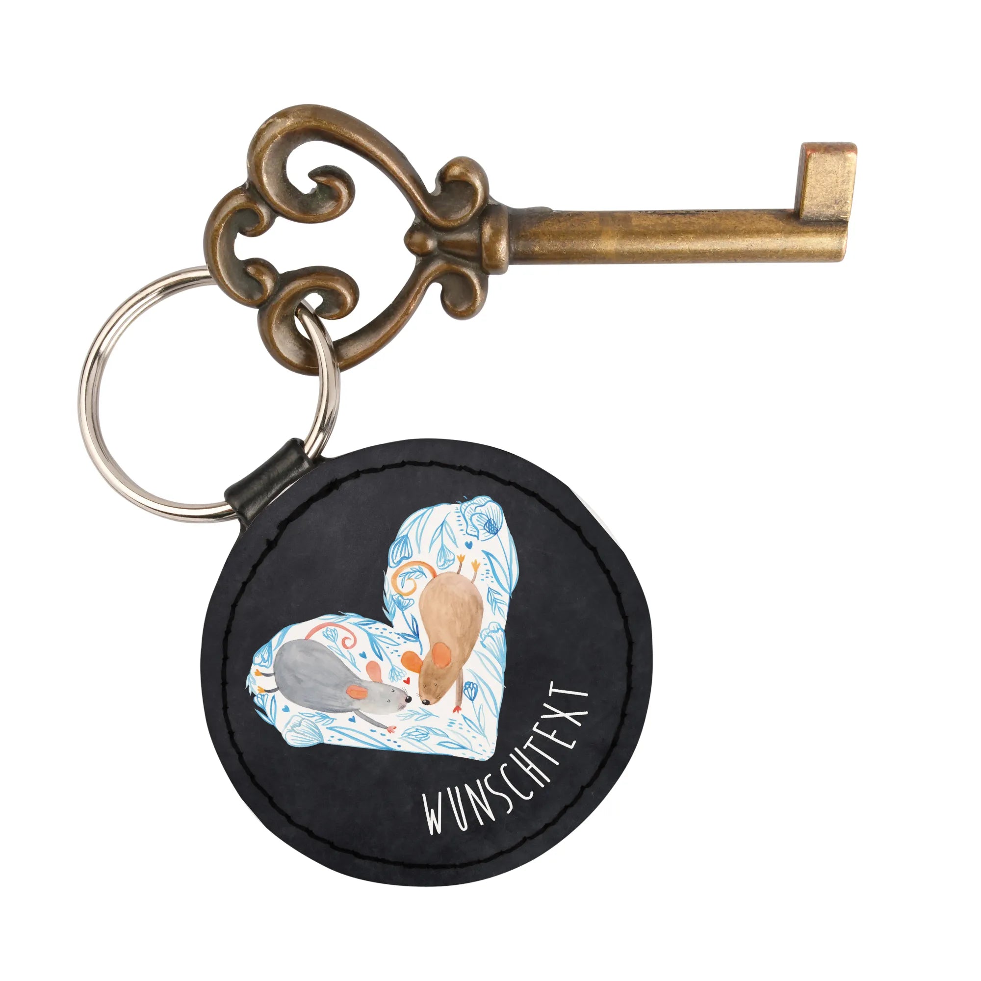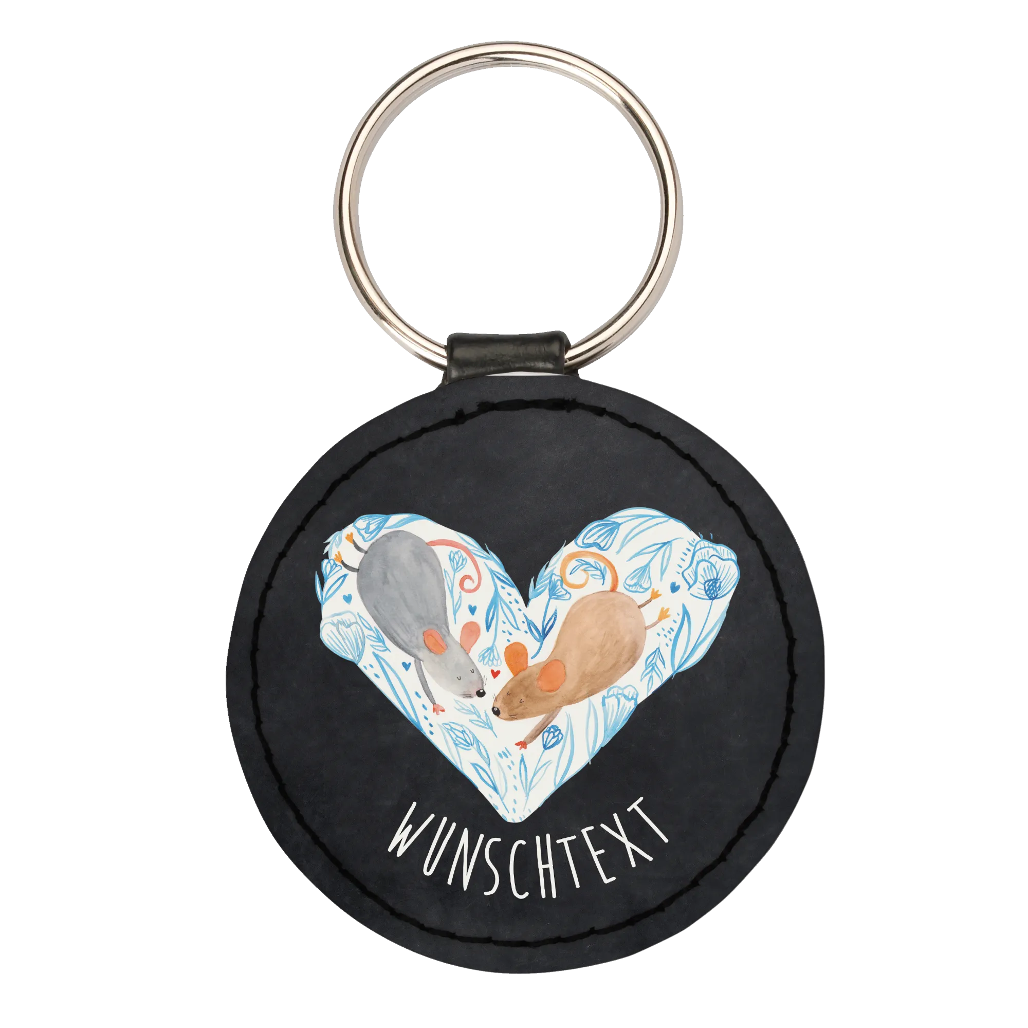 Personalisierter Schlüsselanhänger Mäuse Herz - Kreidetafel