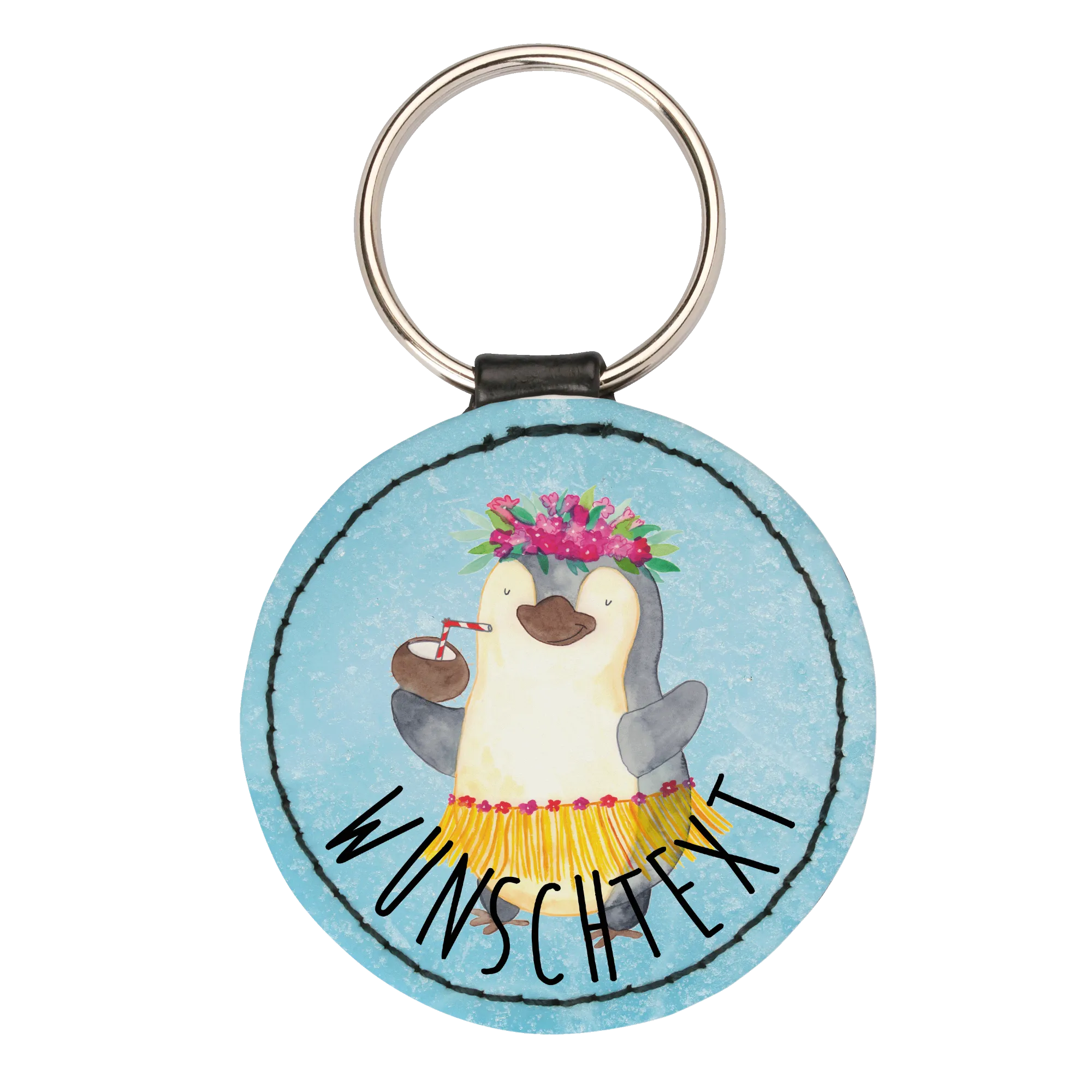 Personalisierter Schlüsselanhänger Pinguin Kokosnuss - Eisblau