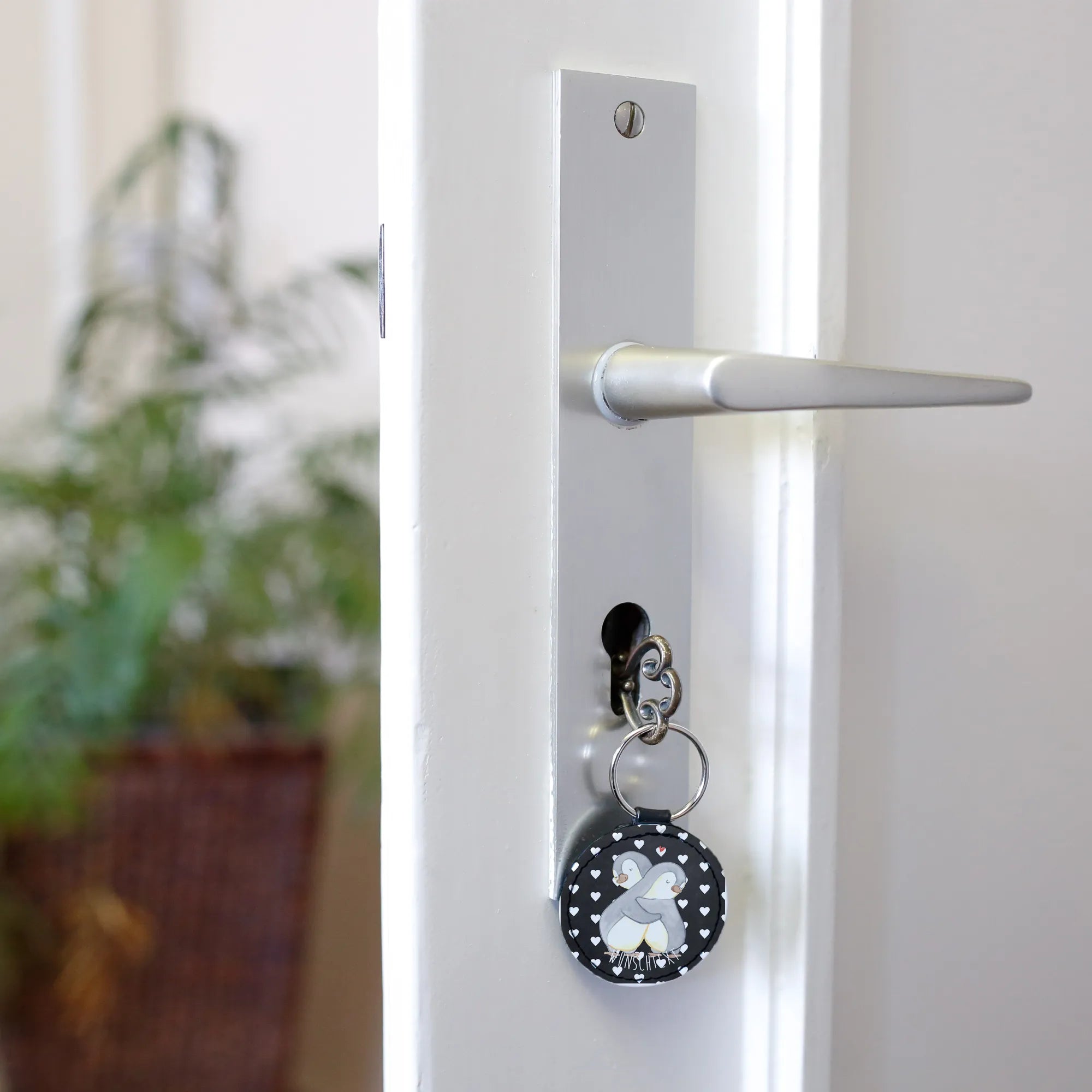 Der personalisierte Schlüsselanhänger mit dem Motiv "Pinguine Kuscheln" aus der Liebe Kollektion von Mr. & Mrs. Panda ist das perfekte Geschenk für all jene, die ihren Liebsten zeigen möchten, wie sehr sie sie schätzen. Mit einem zärtlichen Kuschelmoment zwischen zwei Pinguinen, die sich liebevoll umarmen, fängt dieser Schlüsselanhänger die Magie der Liebe ein.