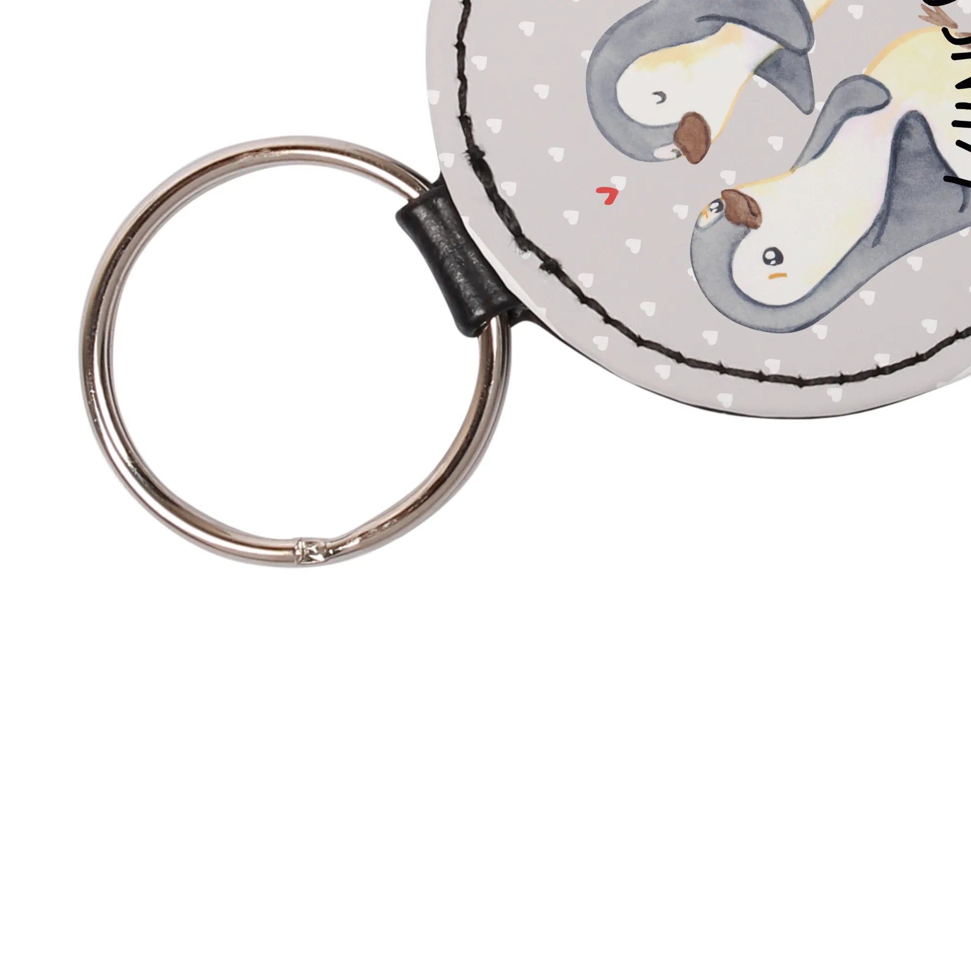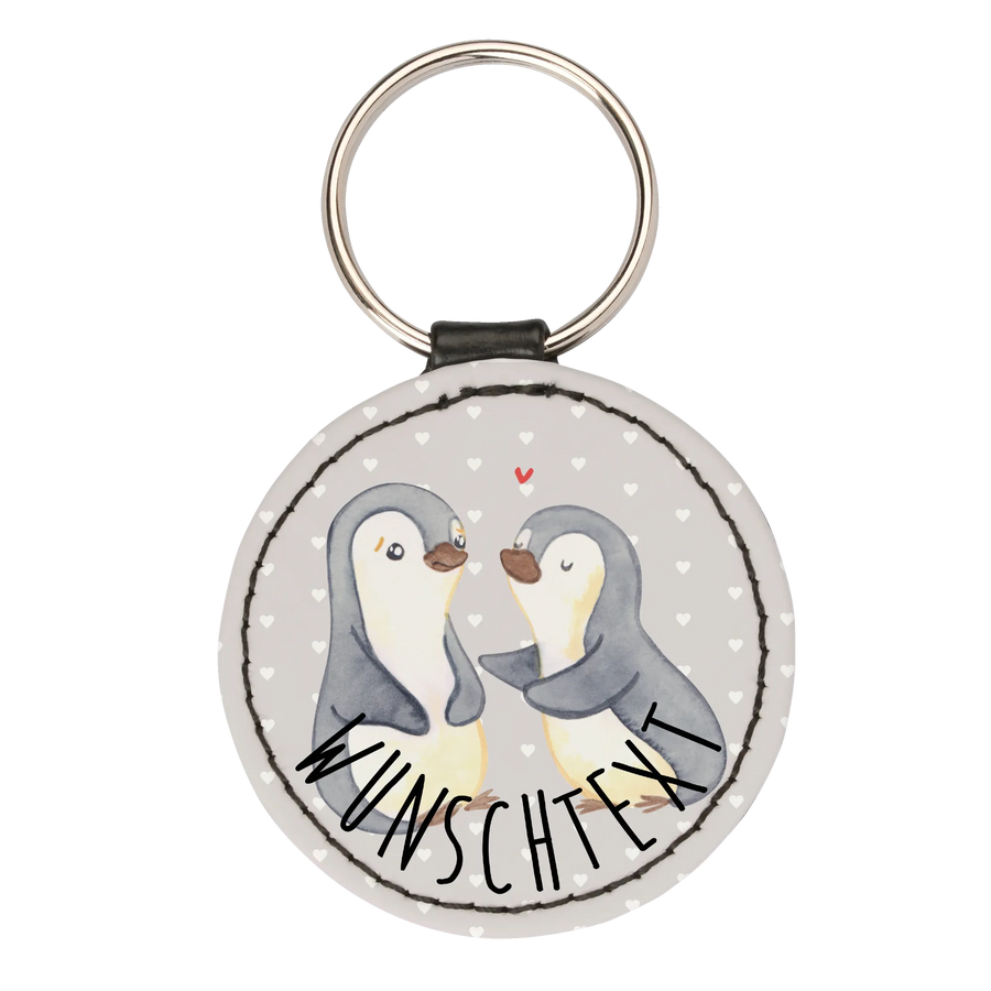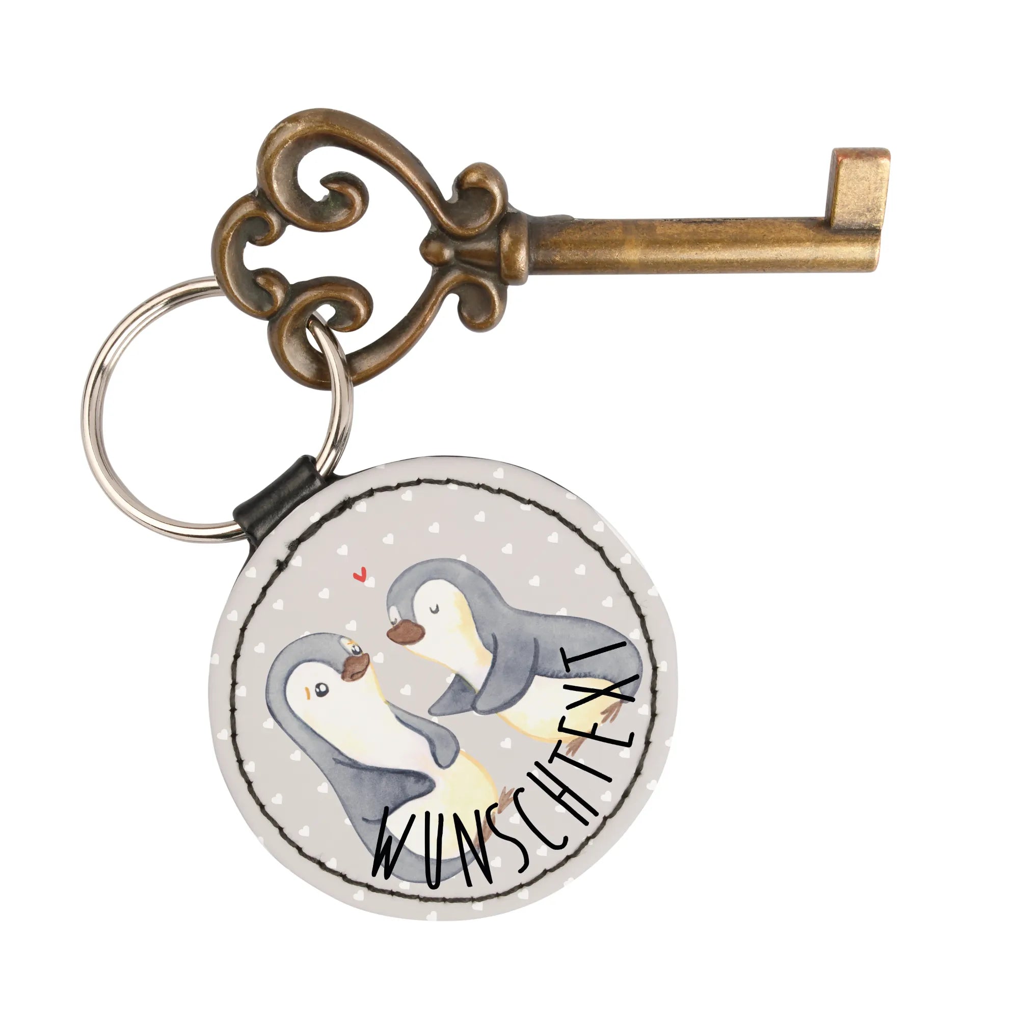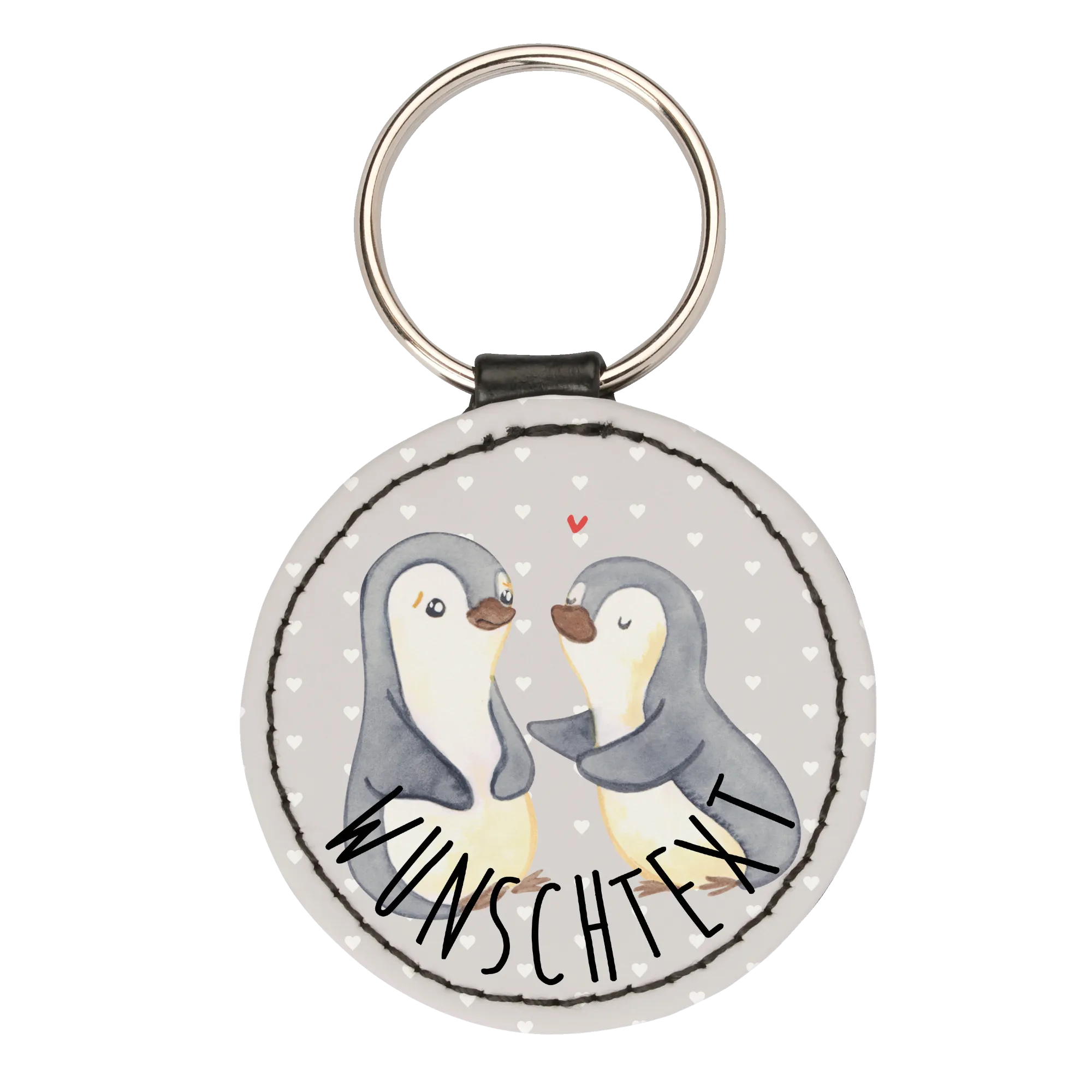 Personalisierter Schlüsselanhänger Pinguine trösten - Grau Pastell