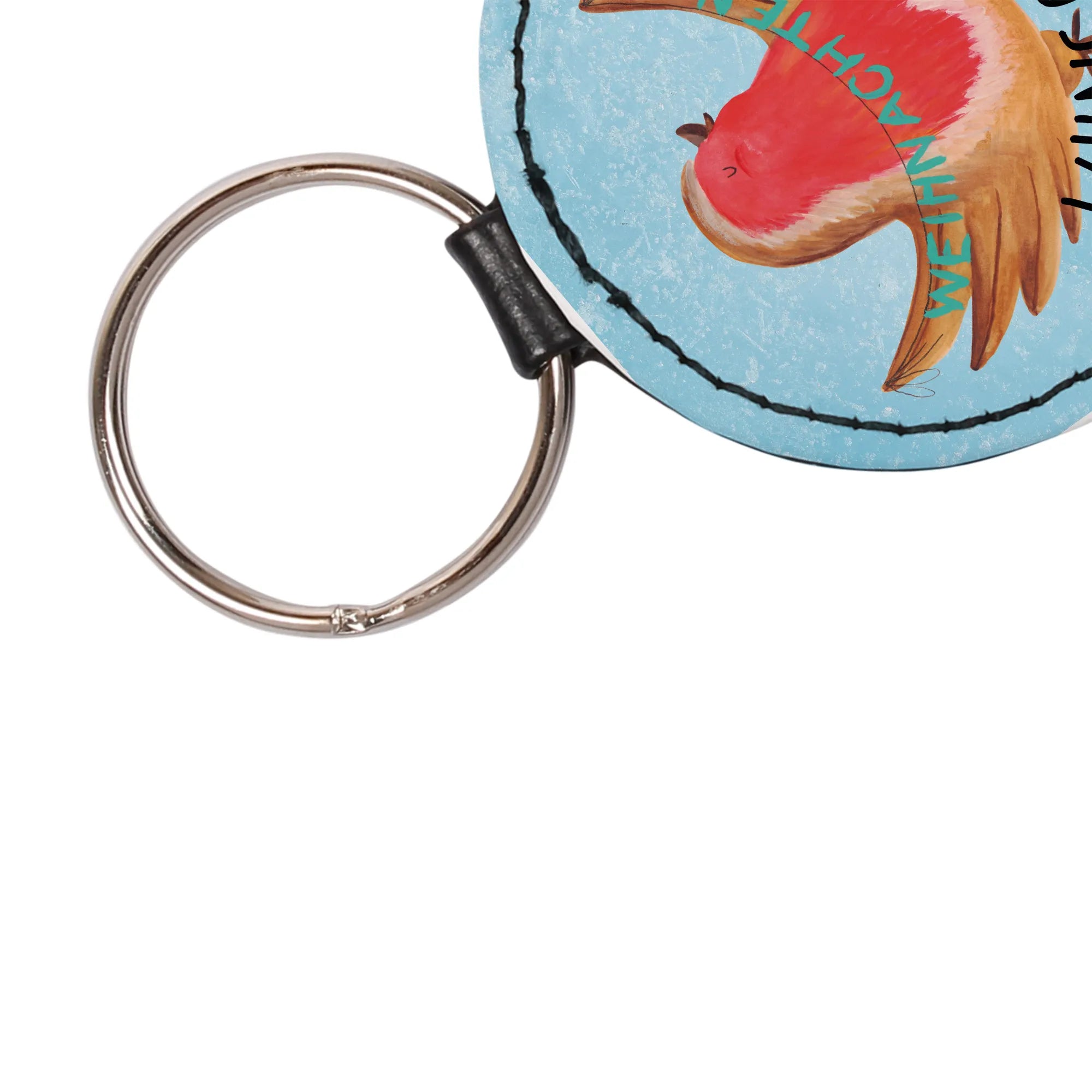 Entdecke unseren zauberhaften personalisierten Schlüsselanhänger mit dem süßen Rotkehlchen Weihnachten aus der Winter Kollektion von Mr. & Mrs. Panda! Dieser Anhänger ist nicht nur ein praktisches Accessoire für deinen Schlüsselbund, sondern auch ein ganz persönlicher Glücksbringer oder Schutzengel. Er wird aus hochwertigem und edlem Premium Kunstleder gefertigt, das sich wunderbar weich anfühlt. Mit einem Maß von 50 mm x 50 mm bietet er eine perfekte Größe, um ihn überallhin mitzunehmen!