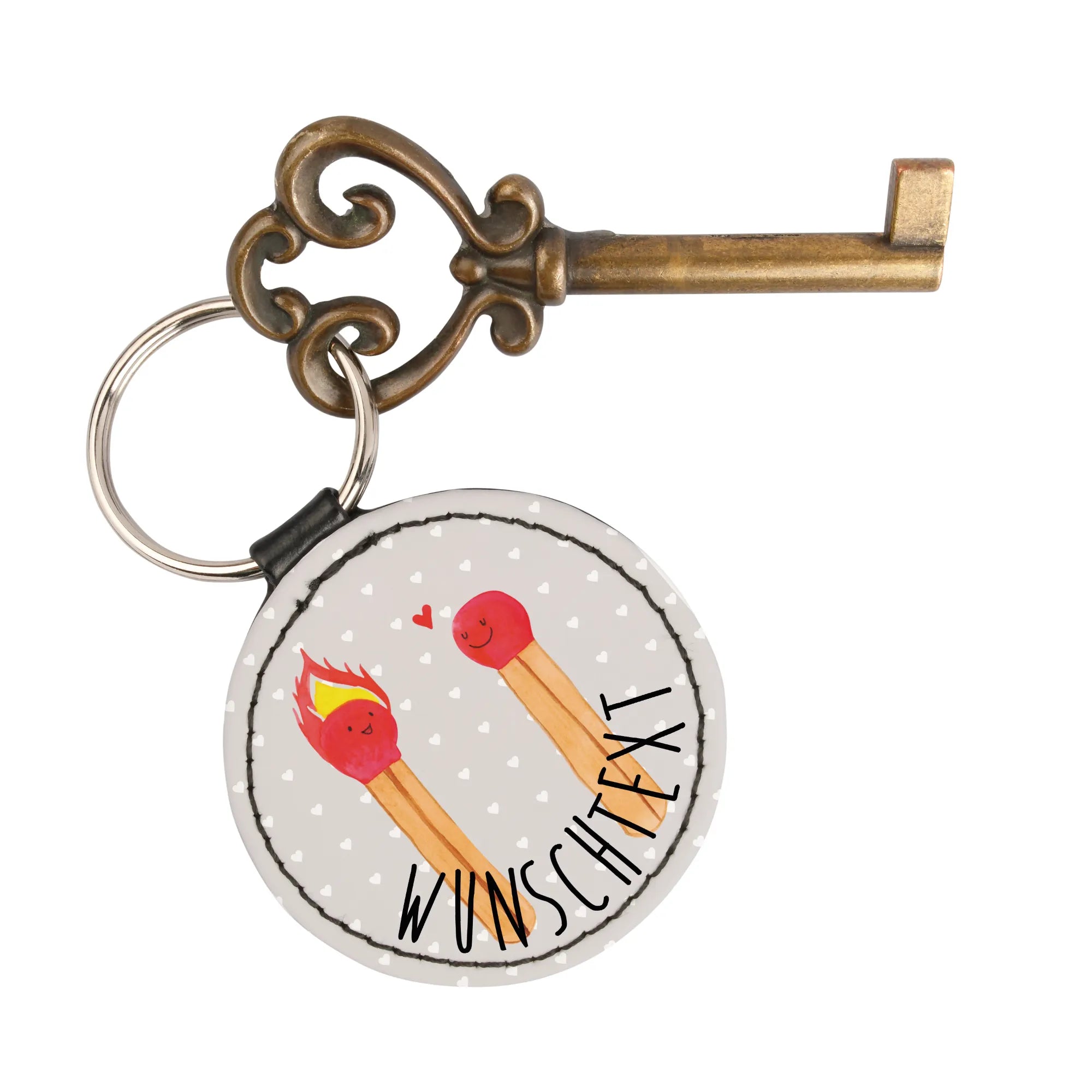 Entdecke den personalisierten Schlüsselanhänger mit dem süßen Motiv Streichhölzer aus der Kollektion Liebe von Mr. & Mrs. Panda!