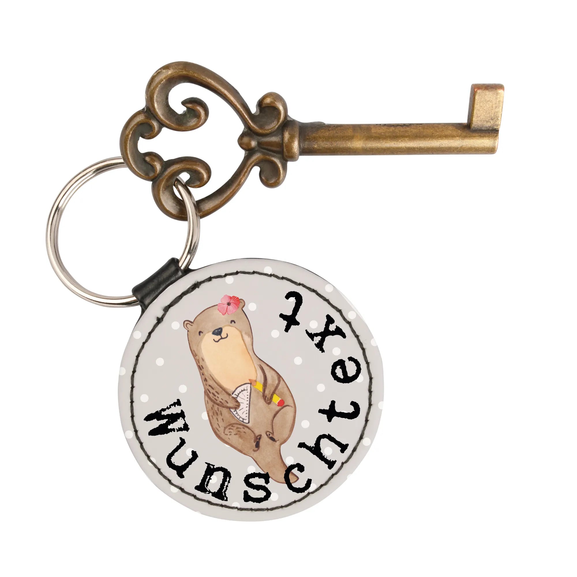 Das Motiv zeigt einen süßen Otter mit Lineal und Bleistift, handgezeichnet von Mrs. Panda in zarten Aquarellfarben. Der freche Spruch „Du bist nur ein halber Mensch, wenn du keine Technische Zeichnerin bist.“ macht den Anhänger zu einem kleinen täglichen Muntermacher.