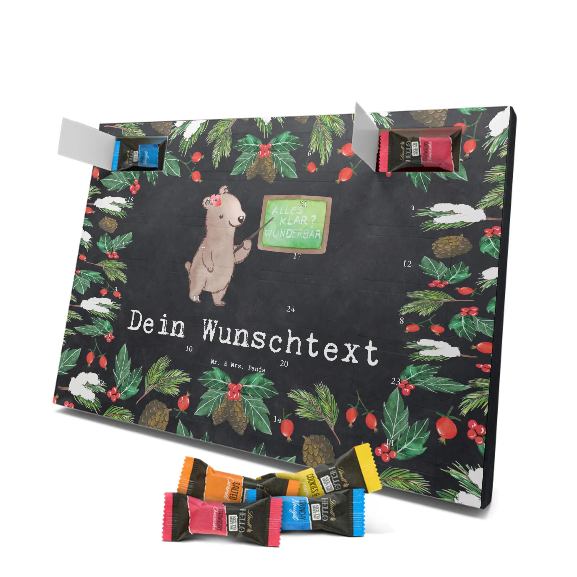 🐼 Schoko Adventskalender personalisiert mit Wunschtext, seidenmatt, gefüllt mit Lindt Hello.