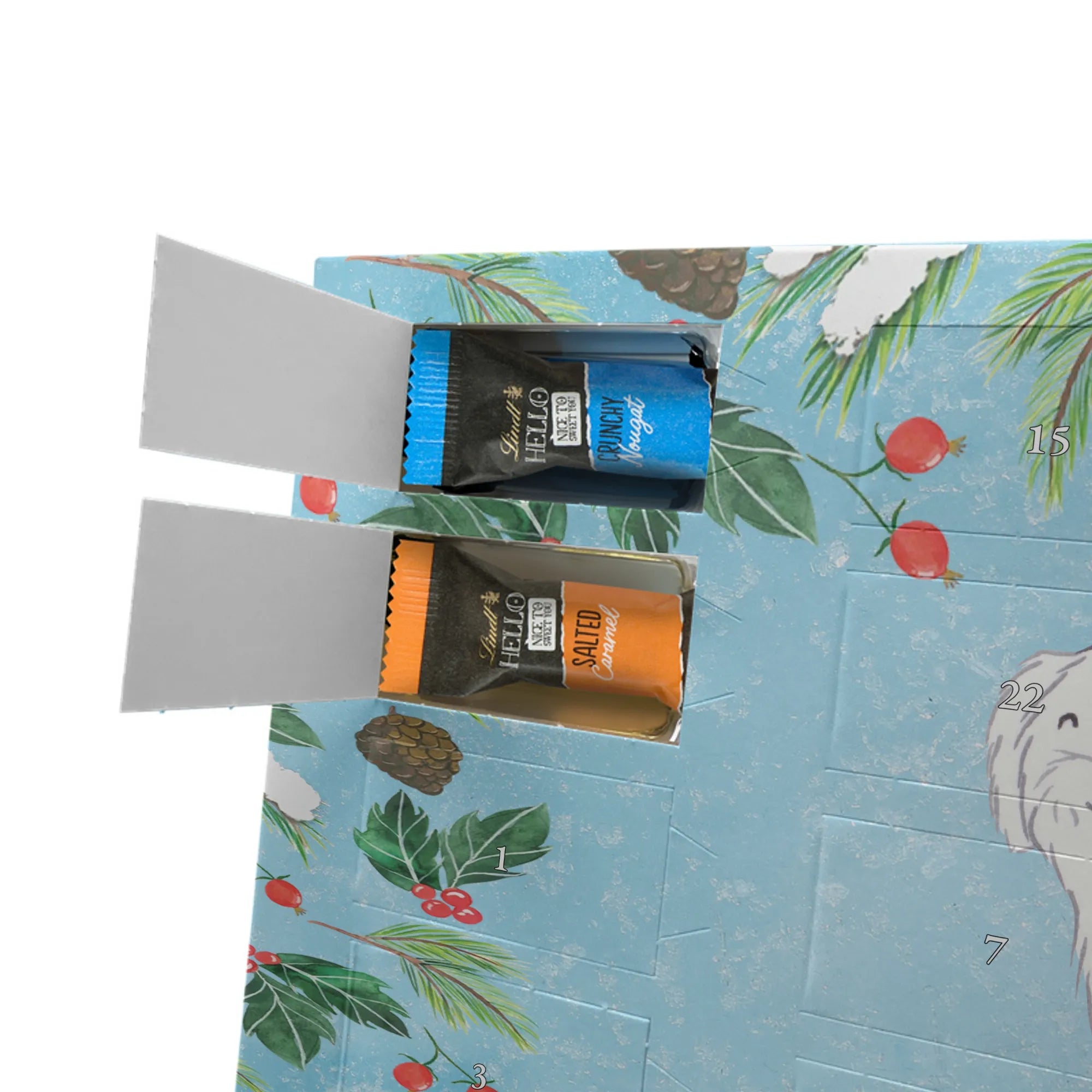 Individueller Schoko Adventskalender von Mr. & Mrs. Panda – das perfekte, persönliche Geschenk für die Adventszeit! Dieser Kalender wurde liebevoll gestaltet, mit fröhlichen Motiven und charmanten Sprüchen bedruckt und lässt sich mit deinem Wunschnamen oder einem individuellen Text versehen. Die brillante Druckqualität gepaart mit seidenmatter Oberflächenveredelung verleiht dem Kalender einen edlen Look; auch die Seitenflächen sind bedruckt, damit das Design rundum stimmig ist. Maße: 233 mm x 178 mm x 24 mm. Praktisch: Du kannst den Kalender aufstellen oder an der Wand aufhängen – ganz nach deinem Geschmack. Gefüllt mit Lindt Lindor Schokolade: 24 einzeln verpackte Markenschokoladen Kugeln in drei verführerischen Sorten. Geschmacksrichtungen: Vollmilch, Feinherb und Weiße Schokolade. Zutaten: Zucker, pflanzliches Fett (Kokosnuss, Palmkern), Kakaobutter, Vollmilchpulver, Kakaomasse, Milchzucker, Magermilchpulver, Butterreinfett, Emulgator (Sojalecithin), Gerstenmalzextrakt, Aromen. Besondere Hinweise: Kann Haselnüsse und Mandeln enthalten. Überrasche deine Liebsten mit einem persönlichen Adventskalender voller kleiner Schoko-Momente und viel Vorfreude.