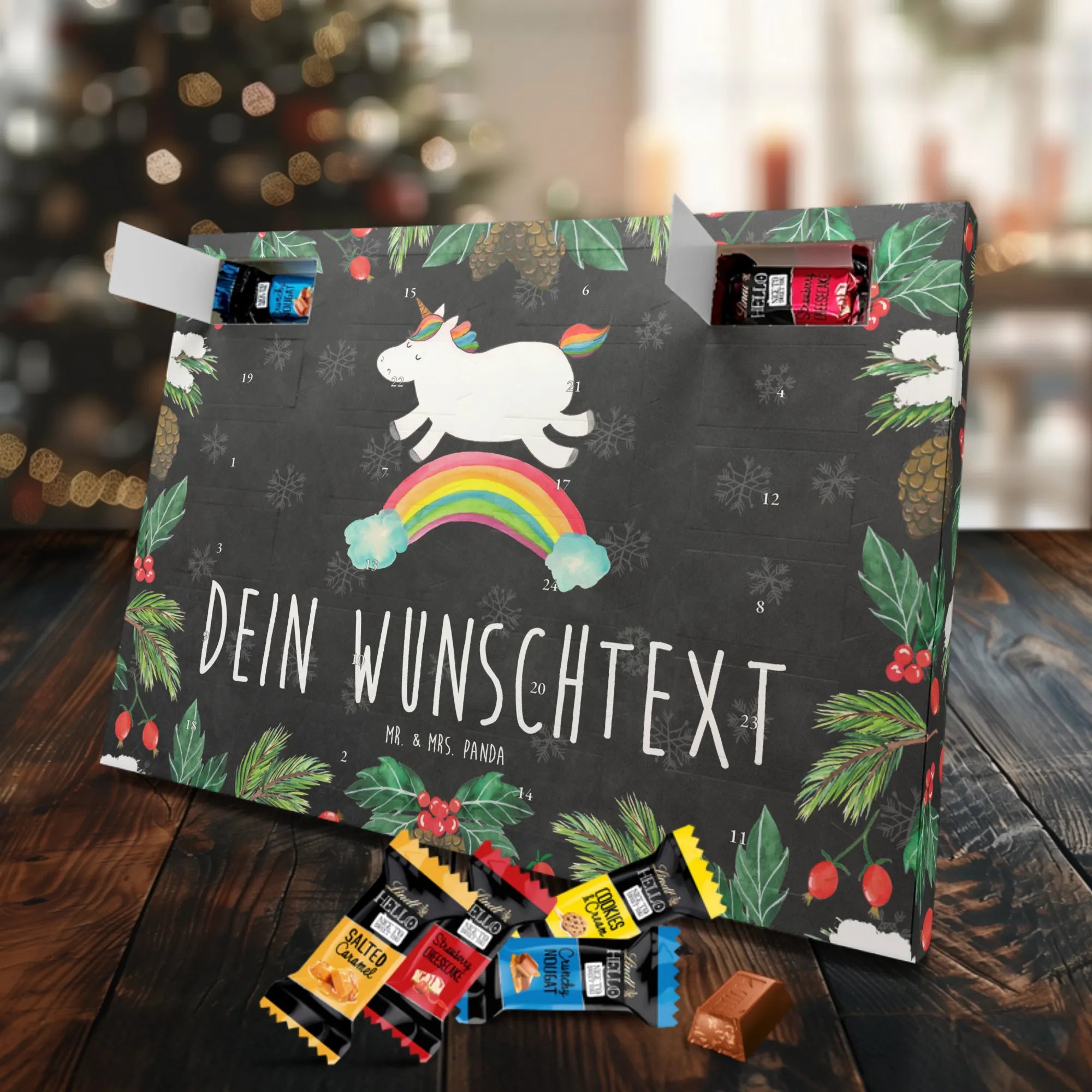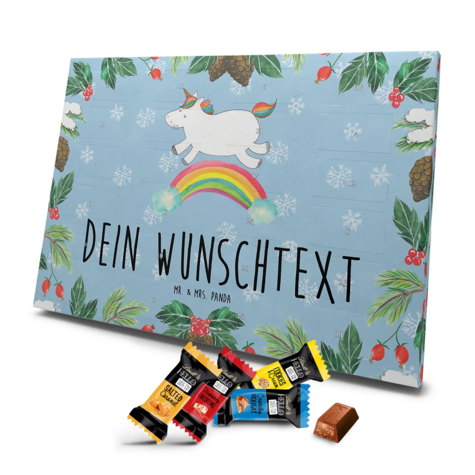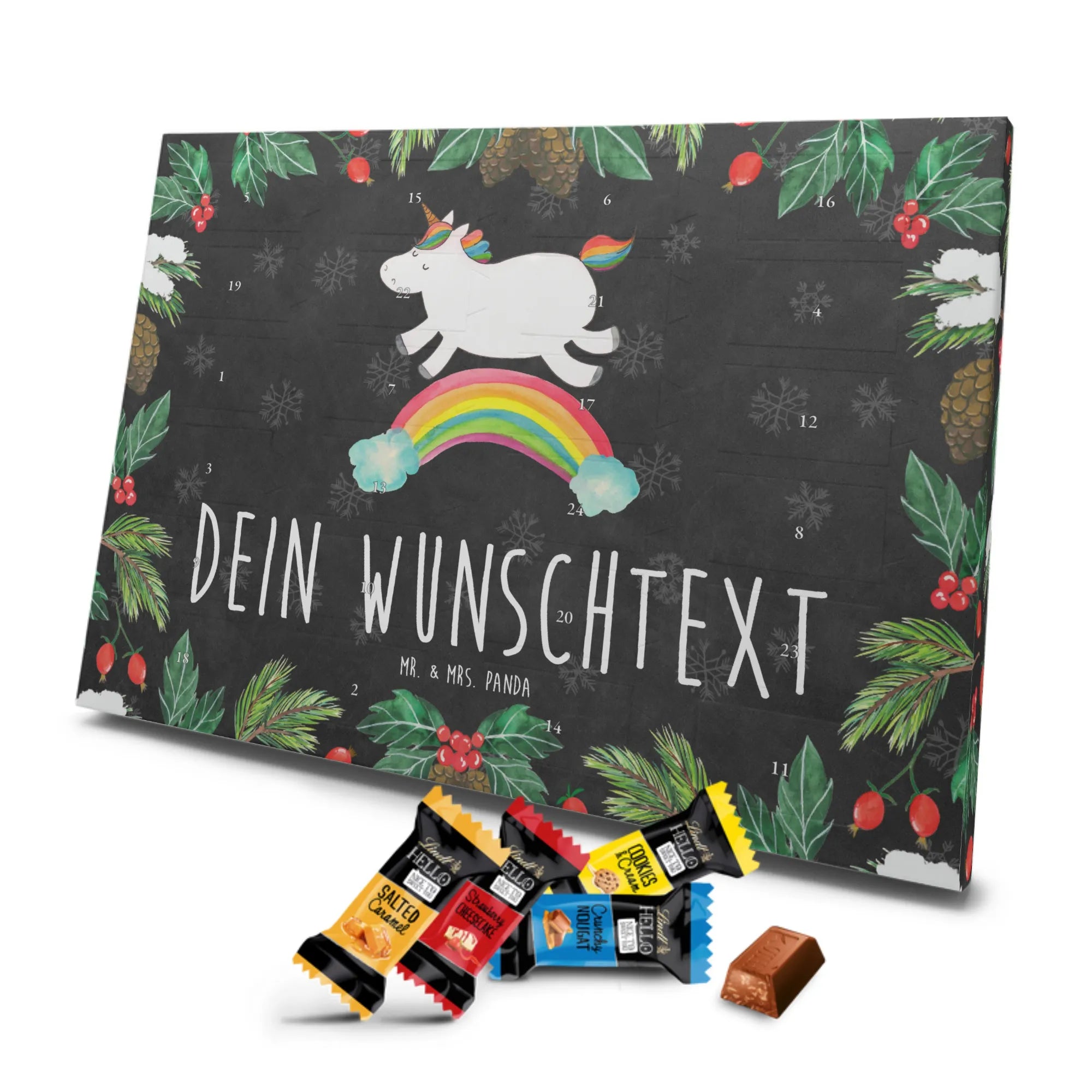 Personalisierter Schoko Adventskalender „Einhorn Regenbogen“ aus der Einhorn - Kollektion von Mr. & Mrs. Panda: ein zauberhaftes Geschenk für alle, die Einhörner, Regenbögen und süße Überraschungen lieben.