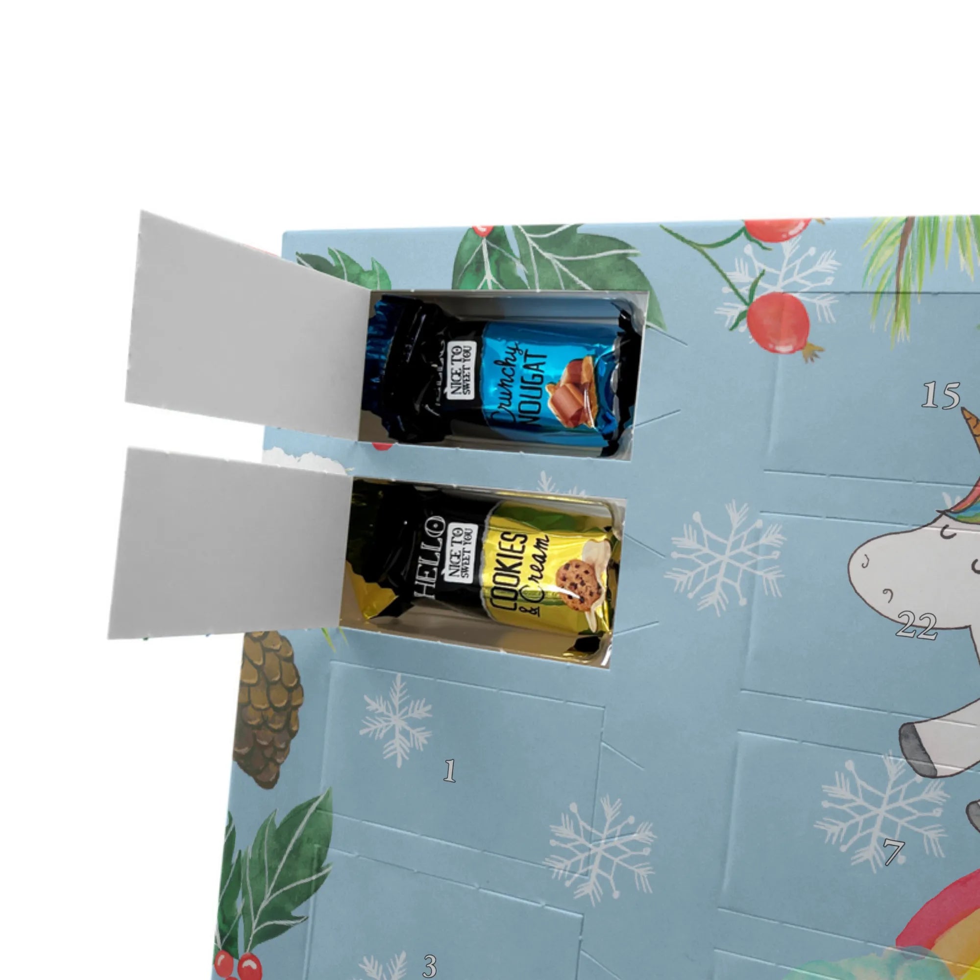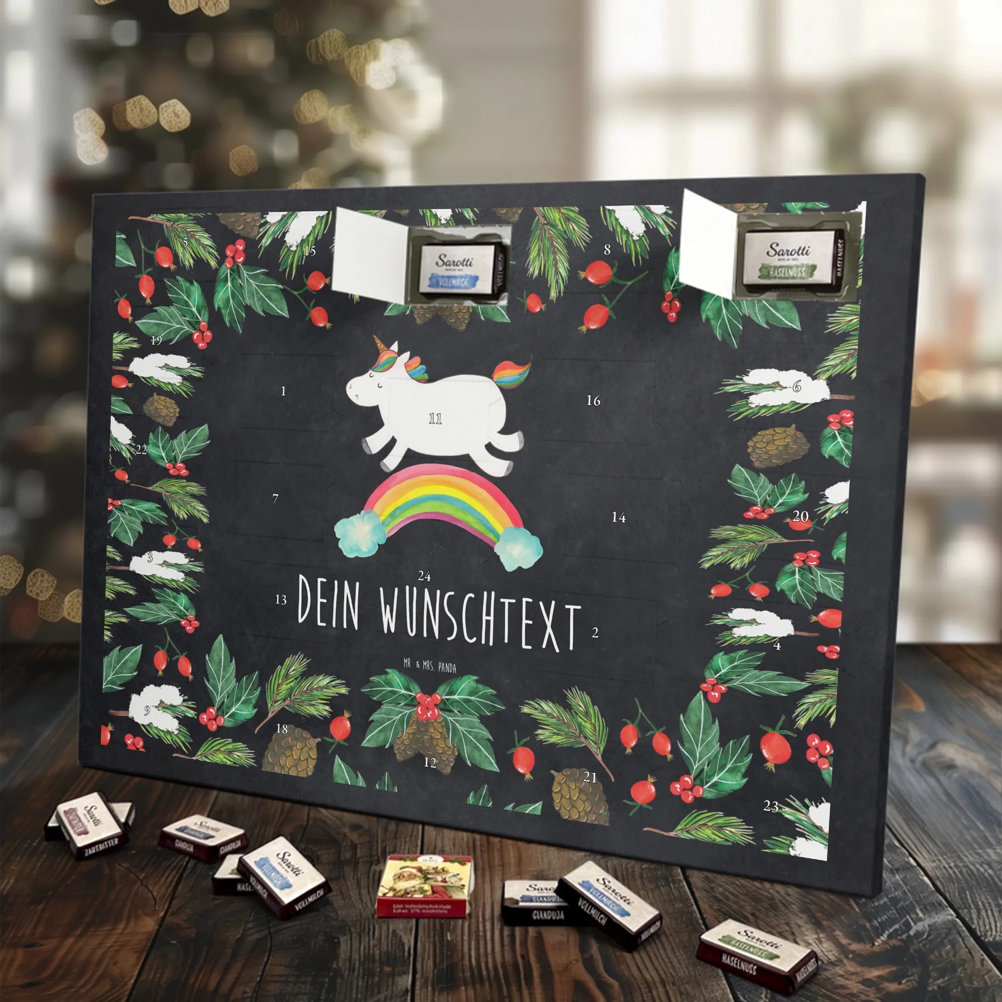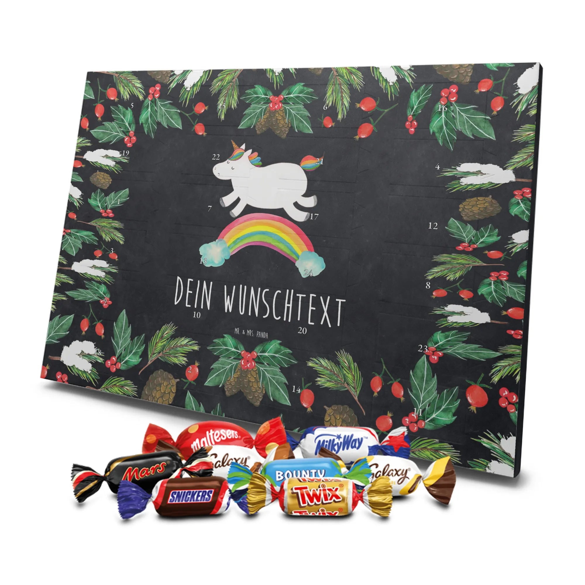Personalisierter Schoko Adventskalender „Einhorn Regenbogen“ aus der Einhorn - Kollektion von Mr. & Mrs. Panda: ein zauberhaftes Geschenk für alle, die Einhörner, Regenbögen und süße Überraschungen lieben.