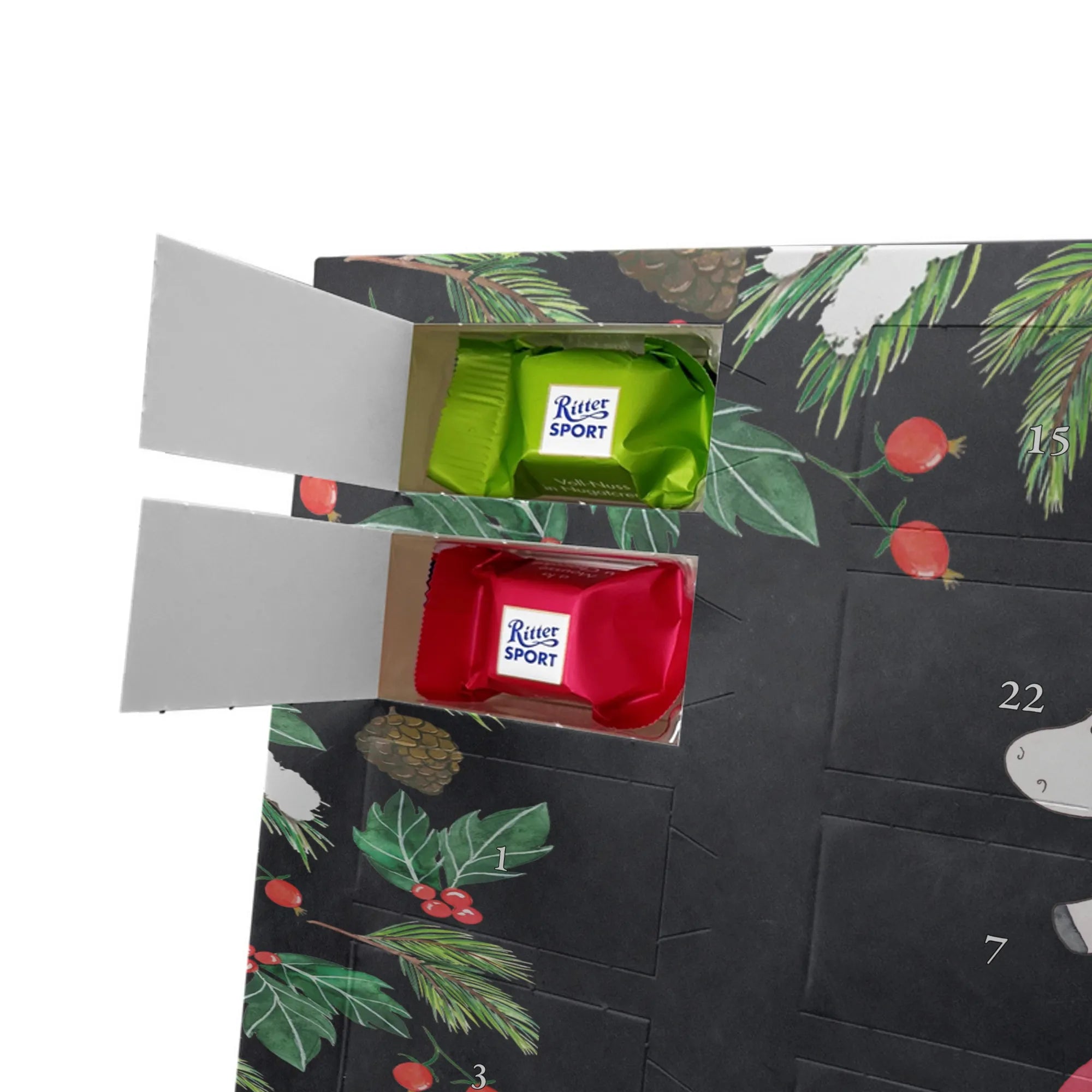🐼 Personalisierter Schoko Adventskalender, seidenmatt und mit Ritter Sport Schokowürfeln.
