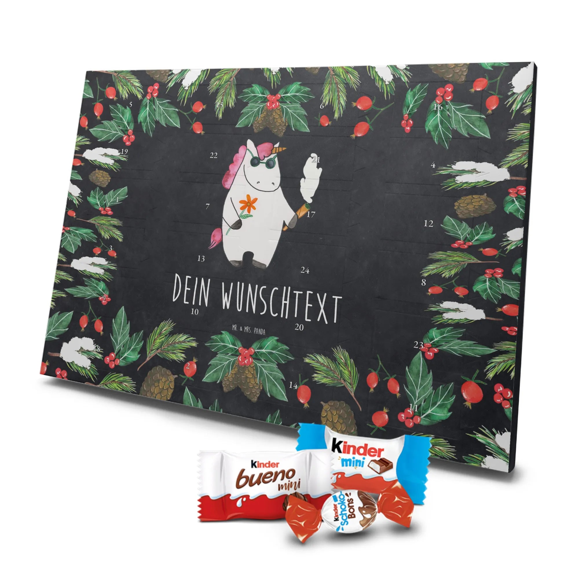 Mach die Adventszeit frech, bunt und lecker – mit dem Personalisierter Schoko Adventskalender Einhorn Woodstock von Mr. & Mrs. Panda.