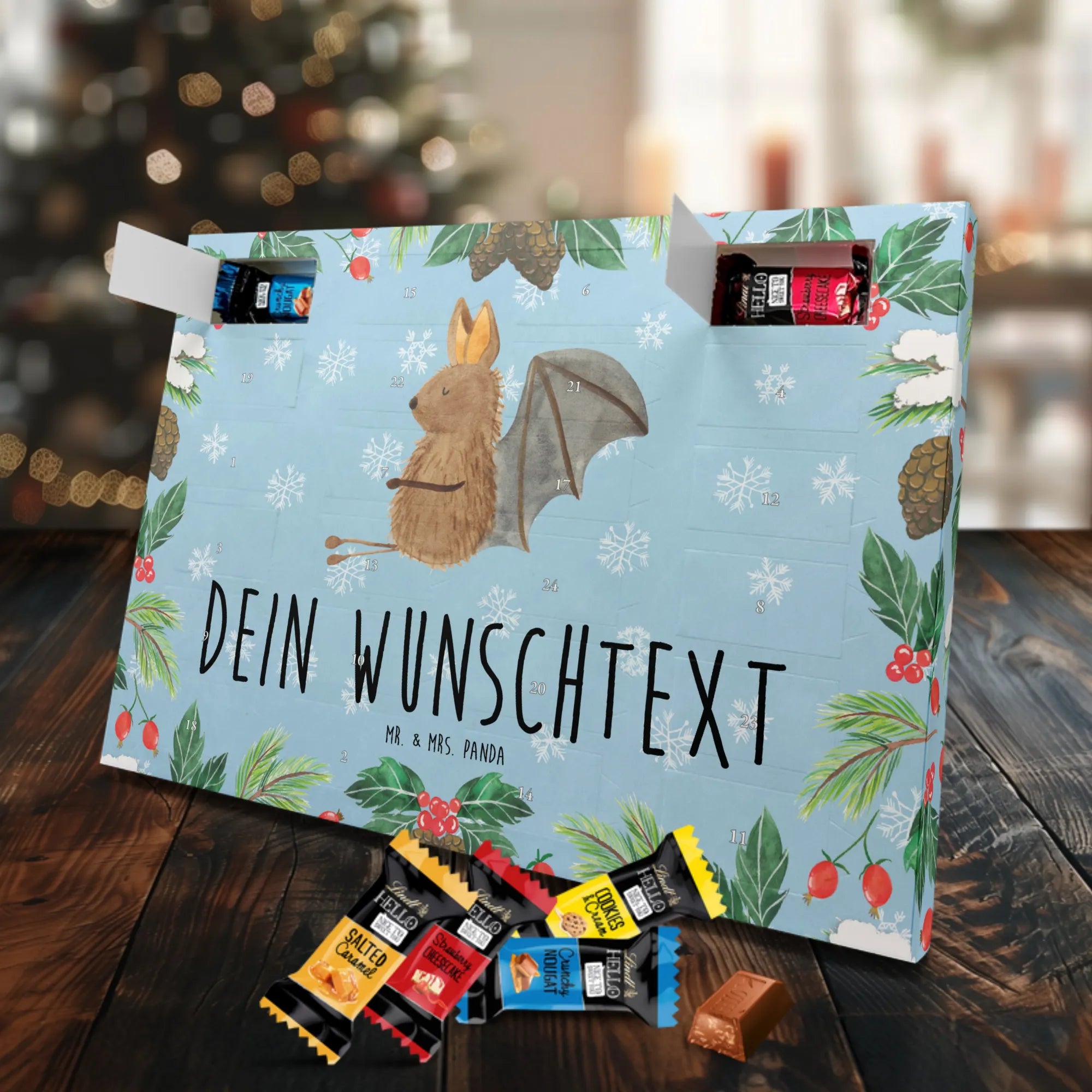 Personalisierter Schoko Adventskalender Fledermaus Sitzen - Classic - Eisblau