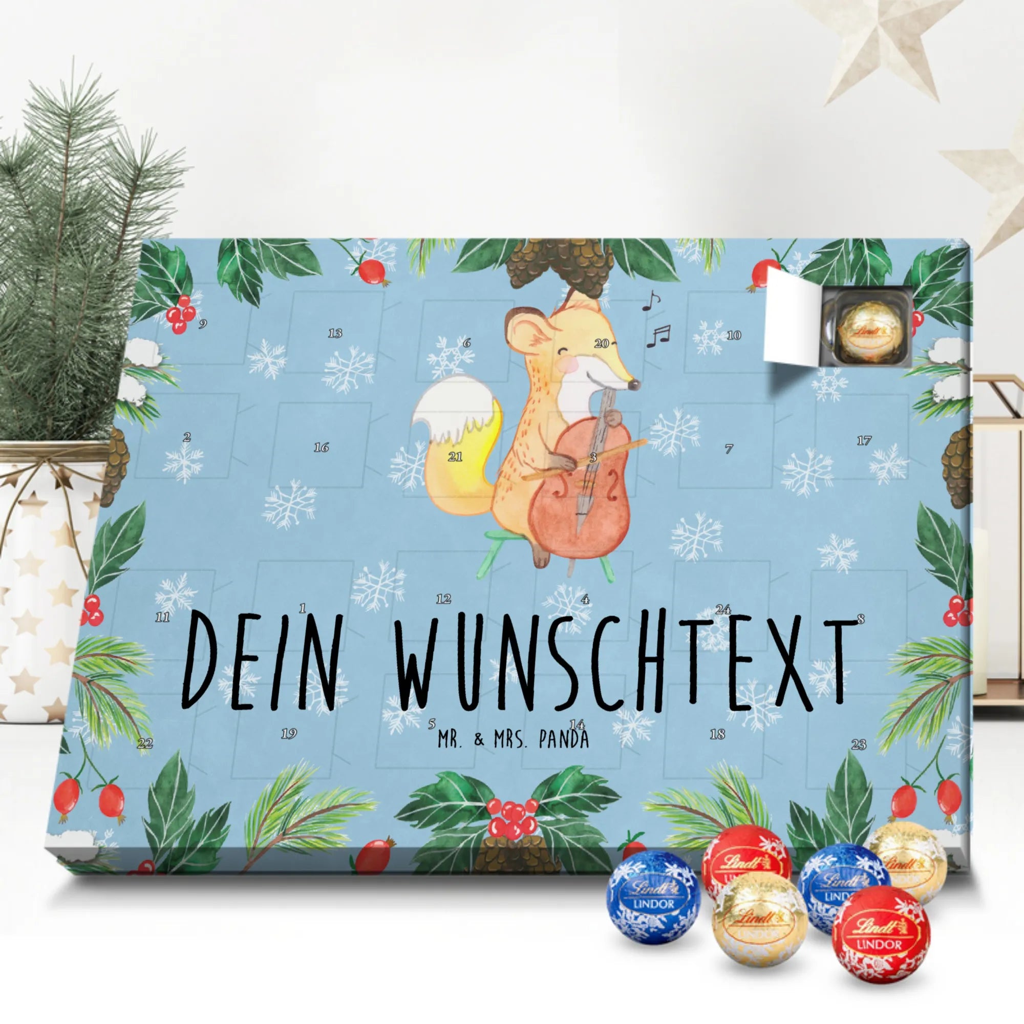 Adventskalender mit Namen Fuchs Violoncello - Classic - Eisblau