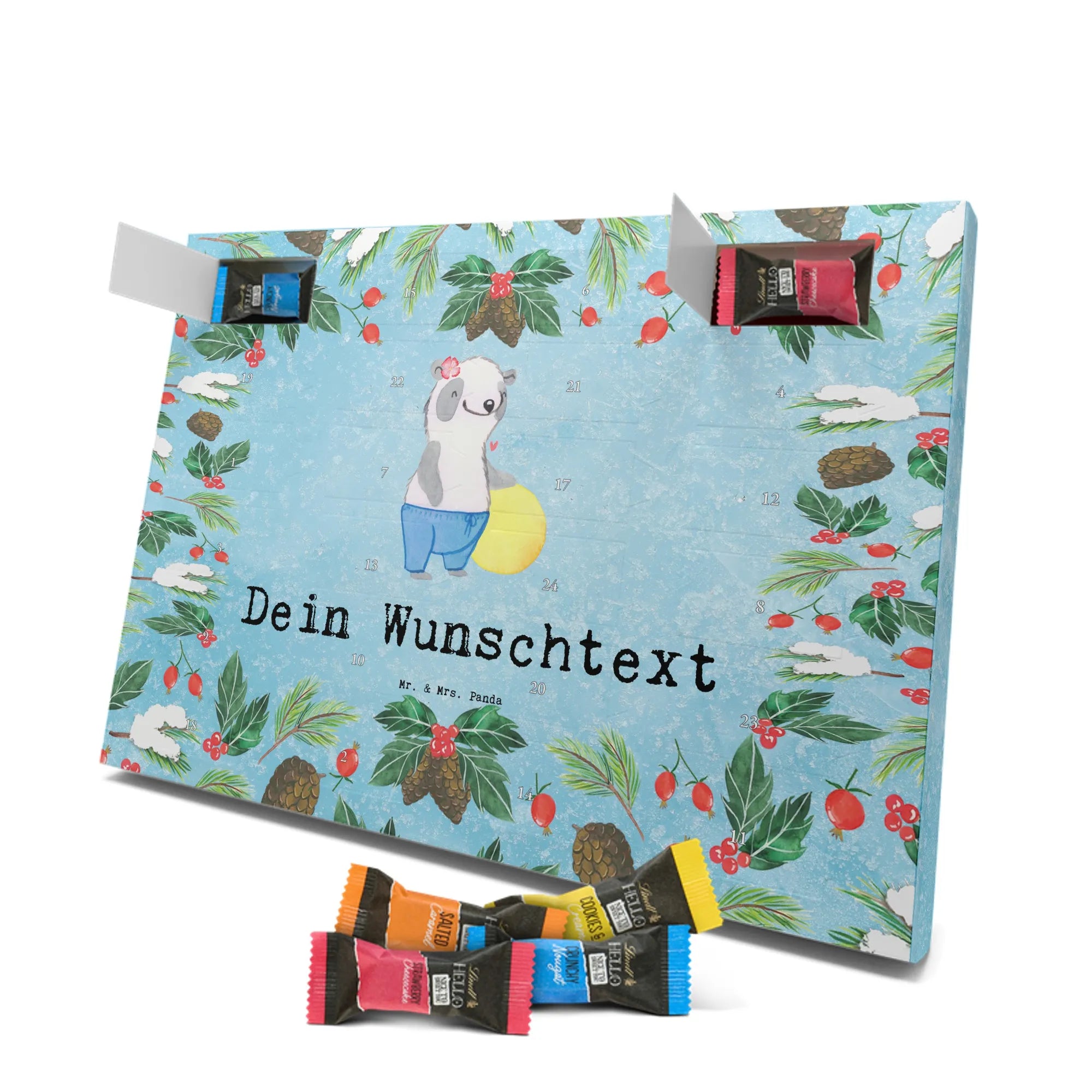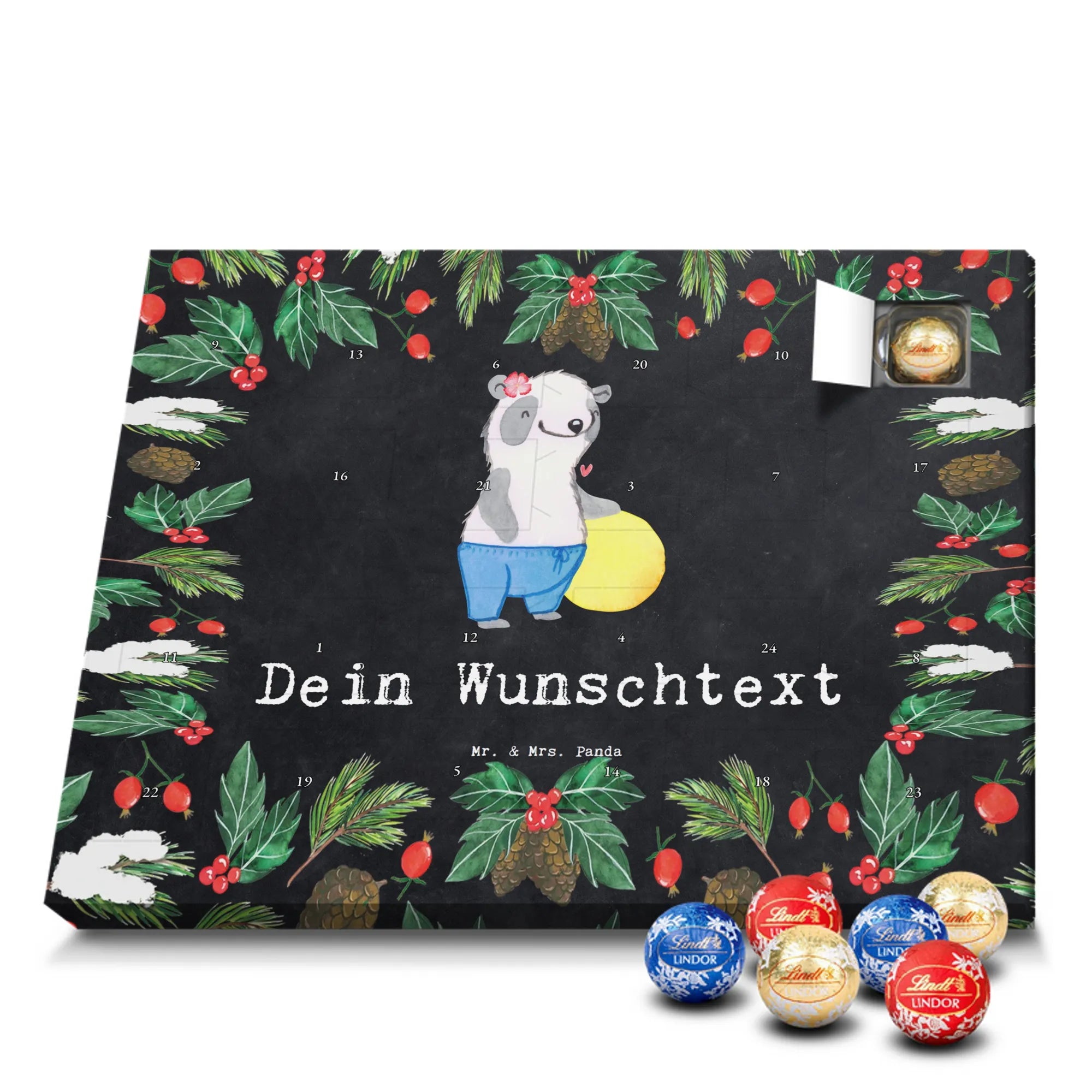 🐼 Schoko Adventskalender personalisiert mit Wunschtext, seidenmatt, gefüllt mit Lindt Hello.