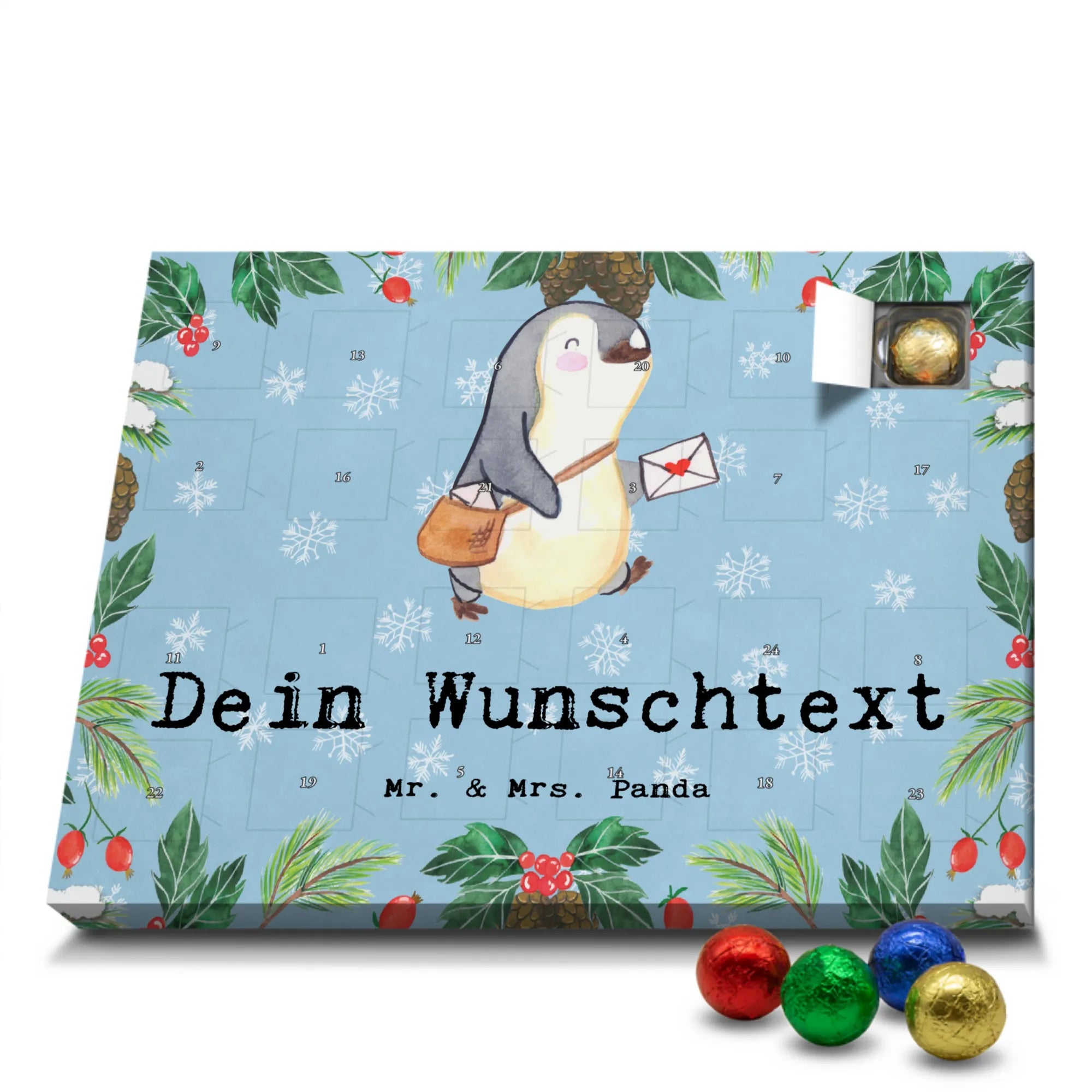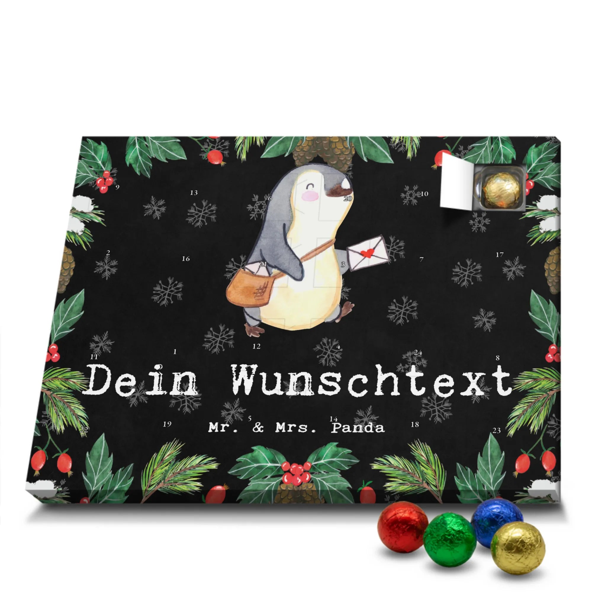 Personalisierter Schoko Adventskalender Postbote Leidenschaft – Mr. & Mrs. Panda