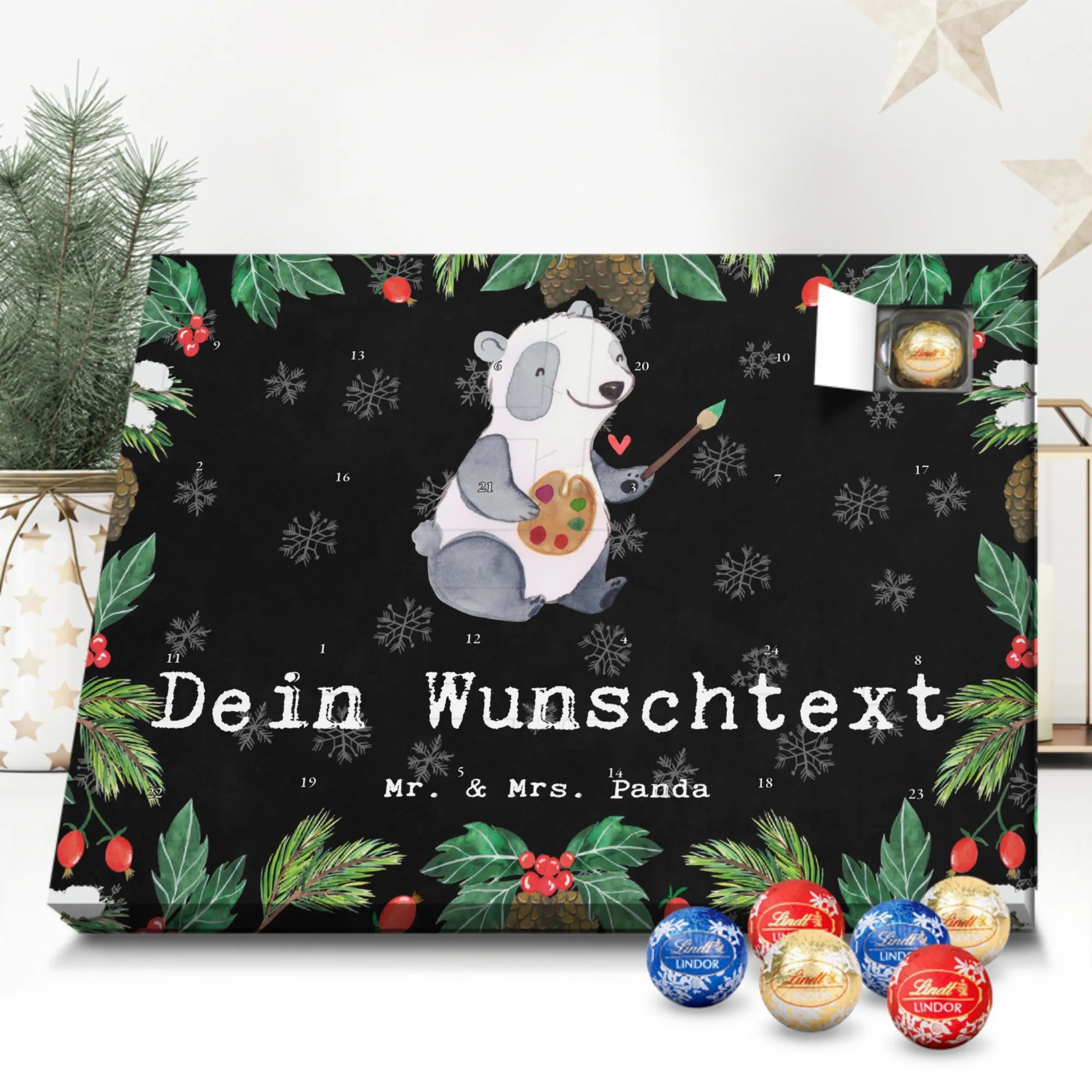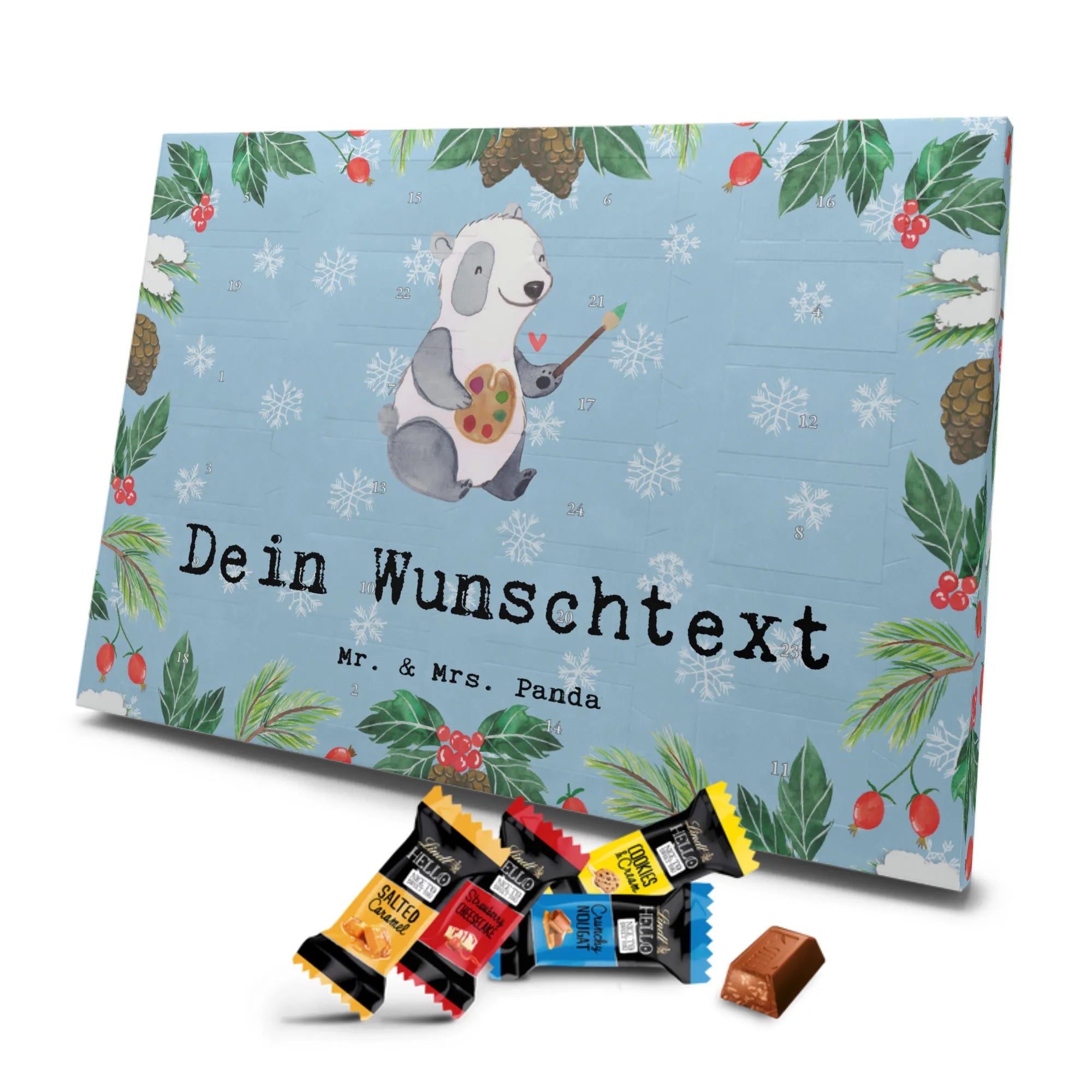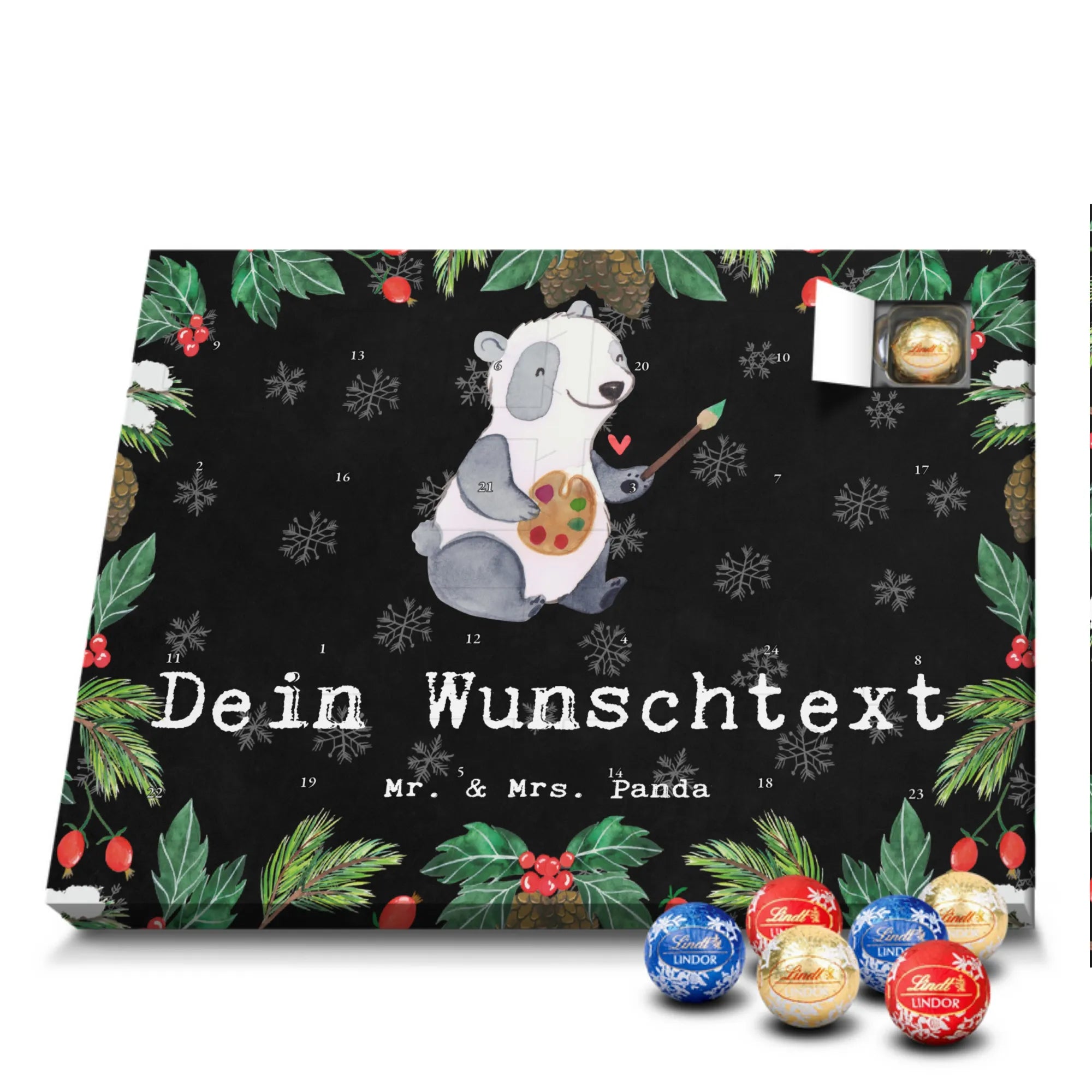 Gestalte Freude: Personalisiere deinen Schoko-Kalender und überrasche mit einem individuellen Adventsgruß von Mr. & Mrs. Panda!
