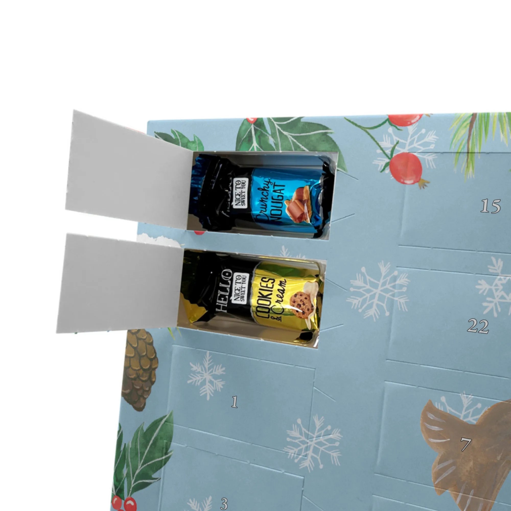 Wunderschöner Personalisierter Schoko Adventskalender von Mr. & Mrs. Panda – dein perfekter Begleiter durch die Vorweihnachtszeit! Dieser Adventskalender ist liebevoll bedruckt mit zauberhaften Motiven und witzigen Sprüchen von Mr. & Mrs. Panda und lässt sich ganz individuell mit deinem Wunschnamen oder Wunschtext personalisieren. Die brillante Druckqualität und die seidenmatte Oberflächenveredelung sorgen dafür, dass die Farben schön leuchten und sich der Kalender edel anfühlt. Auch die Seitenflächen sind bedruckt, sodass er von allen Seiten ein Hingucker ist. Maße: 355 mm x 245 mm x 11 mm. Eine besondere Eigenschaft: Du kannst ihn bequem aufhängen oder aufstellen – je nachdem, wie du ihn präsentieren möchtest. Gefüllt ist der Kalender mit einer hochwertigen Füllung aus 24 einzeln verpackten Schokoladentäfelchen in vier köstlichen Geschmacksrichtungen. Insgesamt enthält er 107 g Markenschokolade von Sarotti® und Confiserie Heidel® in den Sorten Vollmilch, Nougat, Zartbitter und Haselnuss. Bitte beachte: Es handelt sich um einen Kalender gefüllt mit Sarotti® und Confiserie Heidel® Markenschokolade. Verschenke Freude, Individualität und süße Momente – ideal als Geschenk für Freunde, Familie oder dich selbst. Mit diesem persönlichen Adventskalender machst du jeden Tag im Dezember zu einem kleinen Fest.