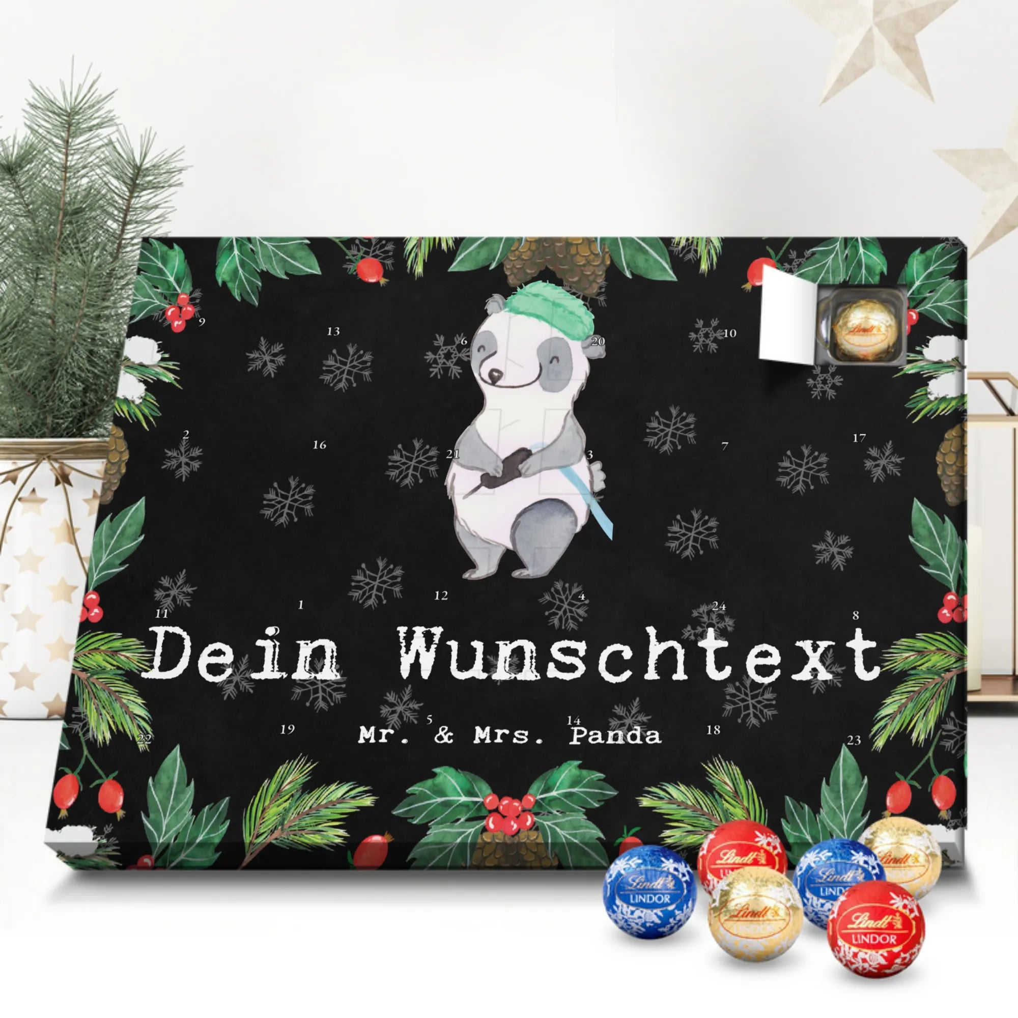 🐼 Schoko Adventskalender personalisiert mit Wunschtext, seidenmatt, gefüllt mit Lindt Hello.