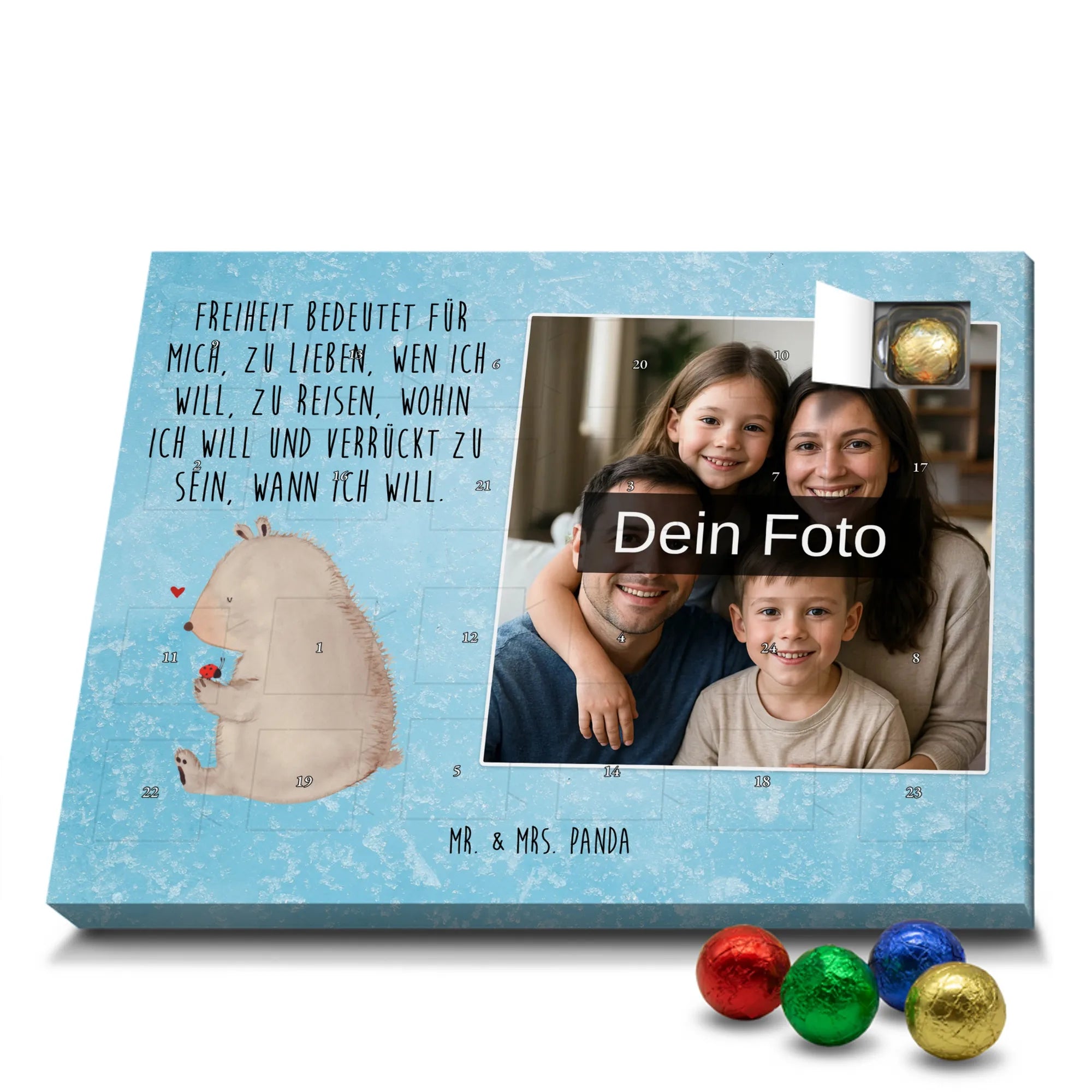 Personalisierter Schoko Foto Adventskalender Bär Marienkäfer - Kinder Schokolade - Kreidetafel