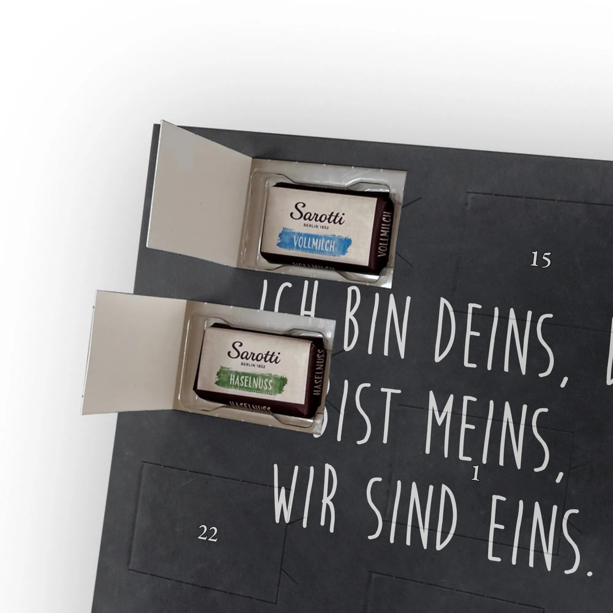Schoko Foto Adventskalender personalisiert – ein zauberhaftes Geschenk, das Erinnerungen und Geschmack vereint. Mr. & Mrs. Panda haben liebevolle Motive und Sprüche gestaltet, die den Kalender umrahmen; dein Foto setzt die persönliche Note. Für ein optimales Druckbild lade bitte ein Foto mit hoher Auflösung hoch und achte auf einen passenden Bildausschnitt, damit wichtige Details nicht abgeschnitten werden. Bitte nur Bilder verwenden, für die du die Rechte besitzt. Die seidenmatte Oberflächenveredelung sorgt für edle Haptik und die bedruckten Seitenflächen für ein rundum gelungenes Design. Maße: 355 mm x 245 mm x 11 mm – kann aufgehängt oder aufgestellt werden. Wichtiger Hinweis: Wir bearbeiten oder schneiden die Fotos nicht nach; eine Rücknahme personalisierter Foto Artikel ist ausgeschlossen. Gefüllt mit 24 einzeln verpackten Schokoladentäfelchen in den Geschmacksrichtungen Vollmilch, Nougat, Zartbitter und Haselnuss von Sarotti® und Confiserie Heidel®. Insgesamt enthält der Kalender 107 g Markenschokolade. Ideal als Geschenk für Partner, Familie oder Freunde – persönlich, süß und liebevoll verpackt von Mr. & Mrs. Panda.