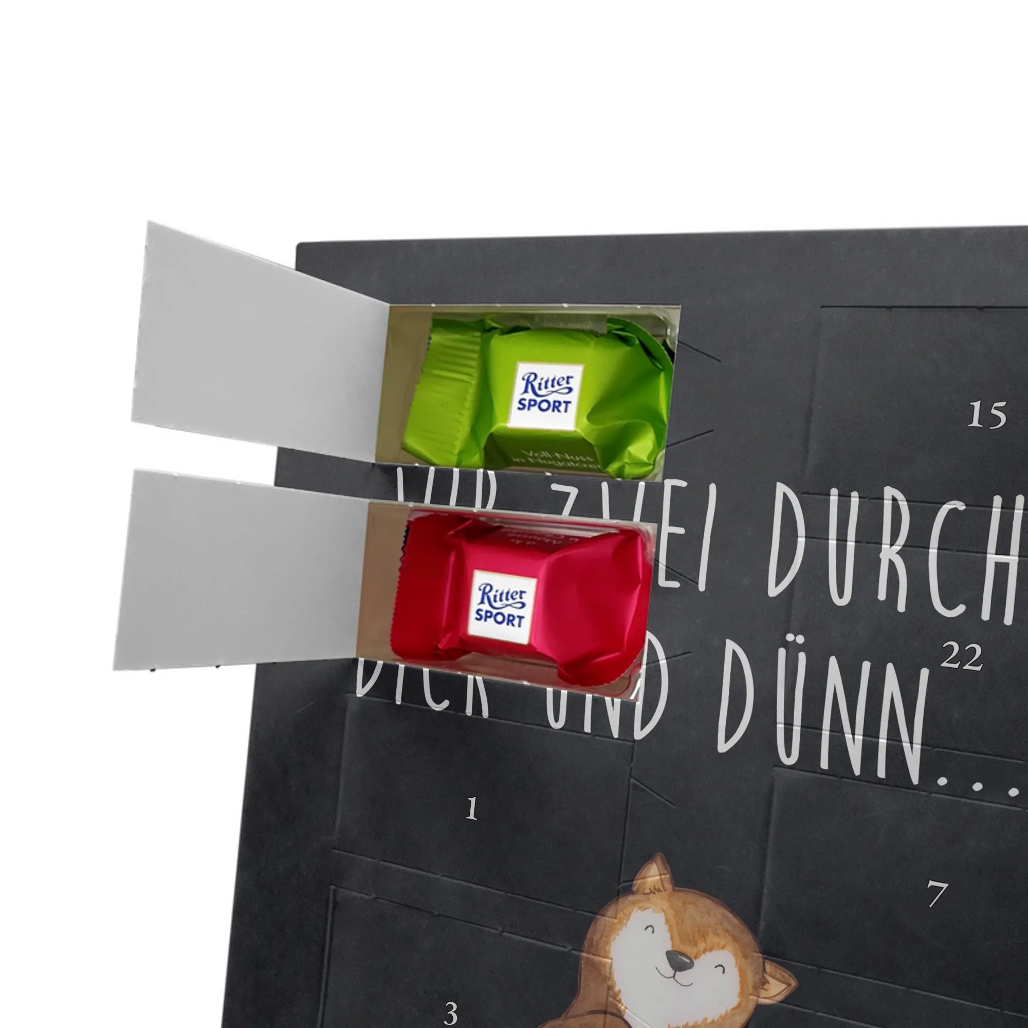 Personalisiertes Schoko-Foto Adventskalender von Mr. & Mrs. Panda – zaubere ein Lächeln in die Adventszeit mit einem persönlichen Foto und unseren liebevollen Motiven & Sprüchen. Der Kalender ist hochwertig bedruckt, verfügt über seidenmatte Oberflächenveredelung und bedruckte Seitenflächen für ein besonders schönes Erscheinungsbild. Bitte lade ein Foto in hoher Auflösung hoch und achte auf den richtigen Bildausschnitt, damit wichtige Details nicht verloren gehen. Verwende nur Bilder, bei denen du die Rechte besitzt; Fotos werden weder aufbereitet noch zugeschnitten und personalisierte Foto Artikel sind vom Umtausch ausgeschlossen. Maße: 325 mm x 225 mm x 27 mm. Besonderheit: Der Adventskalender kann aufgehängt oder aufgestellt werden – ganz flexibel. Gefüllt ist er mit Ritter Sport Schokowürfeln in köstlichen Geschmacksrichtungen wie Mousse au Chocolat, Schoko Crisp, Voll-Nuss in Nougatcreme, Karamell Duo, Joghurt und Erdbeer-Joghurt. Ein persönliches, süßes Geschenk, das hochwertige Optik mit täglichem Genuss verbindet und die Vorfreude auf Weihnachten jeden Tag steigert.