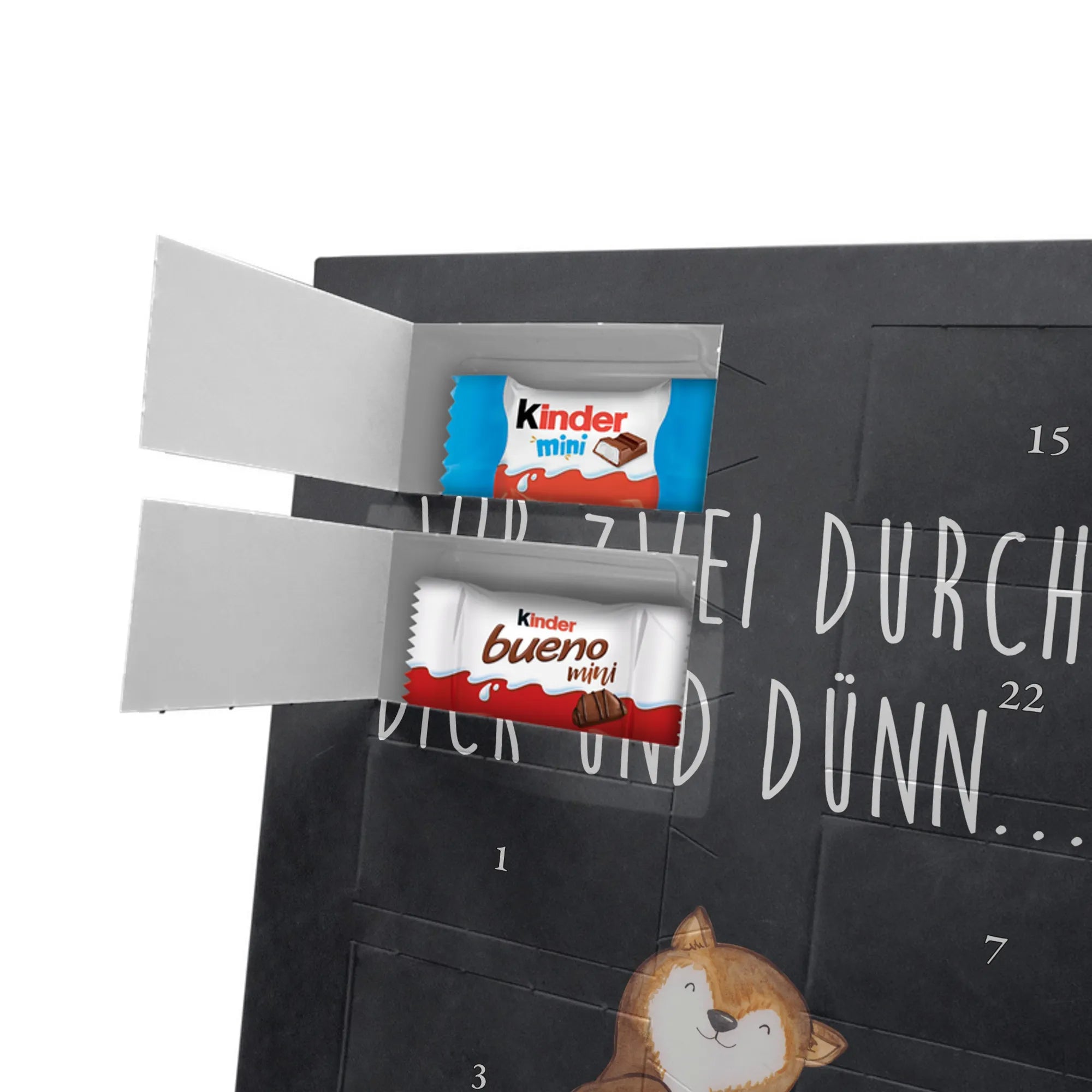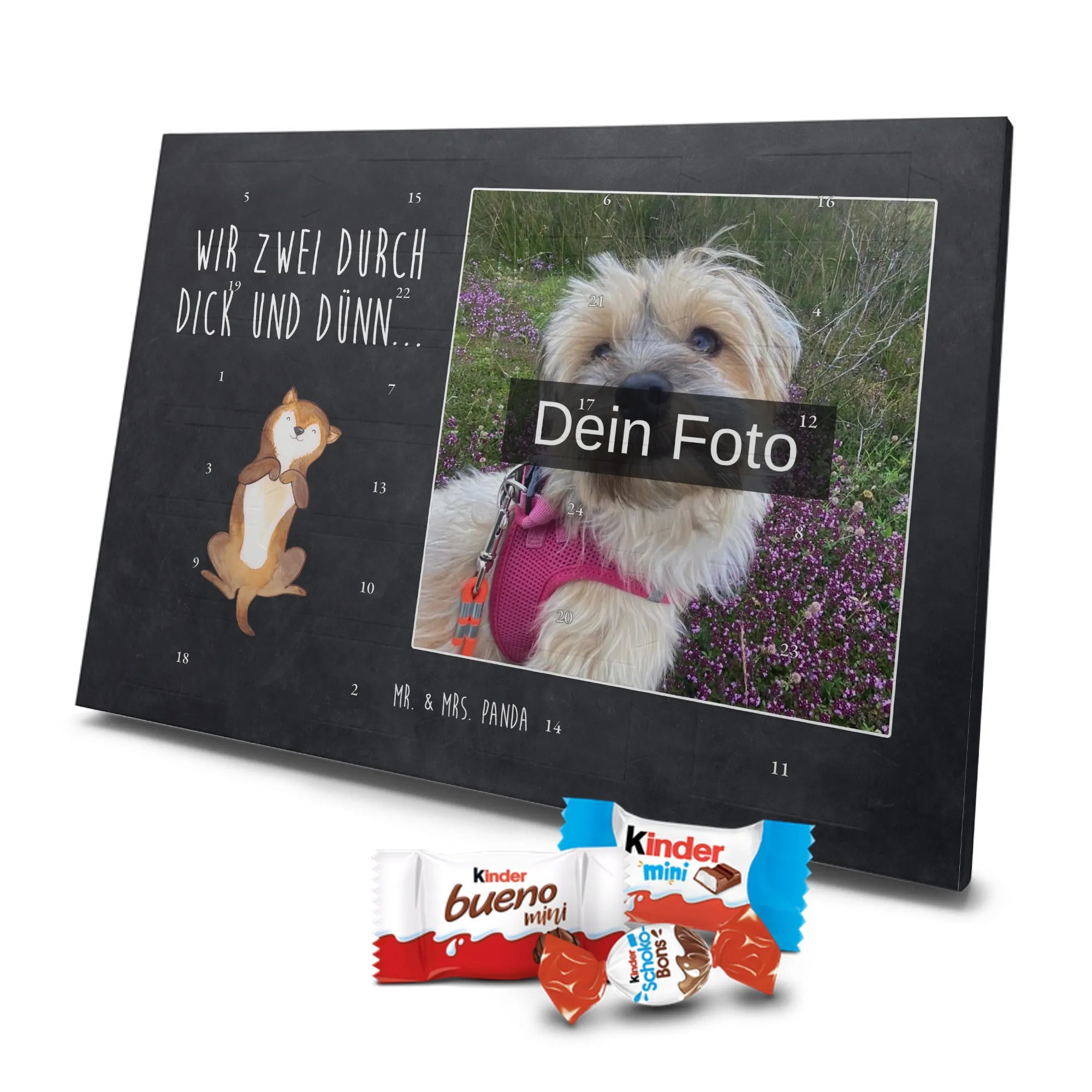 Unser personalisierten Schoko Foto Adventskalender ist ein echtes Highlight in der Adventszeit – handlich, individuell und voller süßer Überraschungen. Du personalisierst die Vorderseite mit deinem liebsten Foto und wir kombinieren es mit liebevollen Motiven und Sprüchen von Mr. & Mrs. Panda. Bitte achte auf eine ausreichende Bildauflösung und einen passenden Bildausschnitt, damit das Druckergebnis gestochen scharf ist. Lade nur Bilder hoch, deren Rechte du besitzt oder bei denen du die Erlaubnis hast, besonders wenn Personen darauf zu sehen sind. Wichtig: Fotos werden nicht retuschiert oder zugeschnitten; personalisierte Foto-Artikel sind vom Widerruf ausgeschlossen. Der Kalender besticht durch brillante Druckqualität und eine seidenmatte Oberflächenveredelung sowie bedruckte Seitenflächen. Maße: 355 mm x 245 mm x 11 mm. Du kannst ihn entweder aufstellen oder an die Wand hängen. Gefüllt ist der Adventskalender mit kinder® Schokolade, inklusive kinder® Schoko-Bons, kinder® Bueno mini und kinder® Schokolade mini. Ein liebevolles, persönliches Geschenk für Kinder, Freunde oder die bessere Hälfte – individuell, süß und mit dem typischen Mr. & Mrs. Panda Charme.
