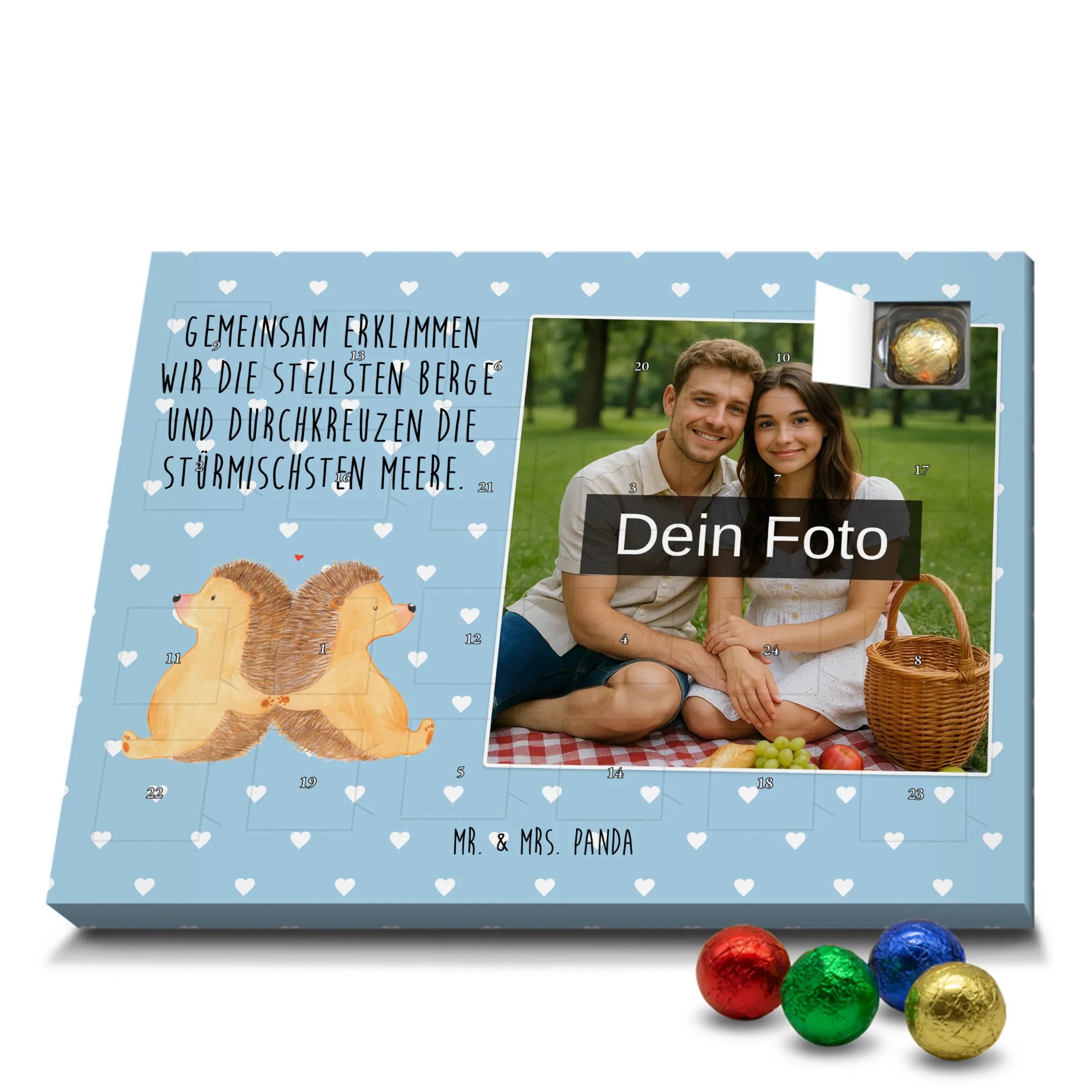 Personalisierter Schoko Foto Adventskalender Igel händchenhaltend – Mr. & Mrs. Panda
