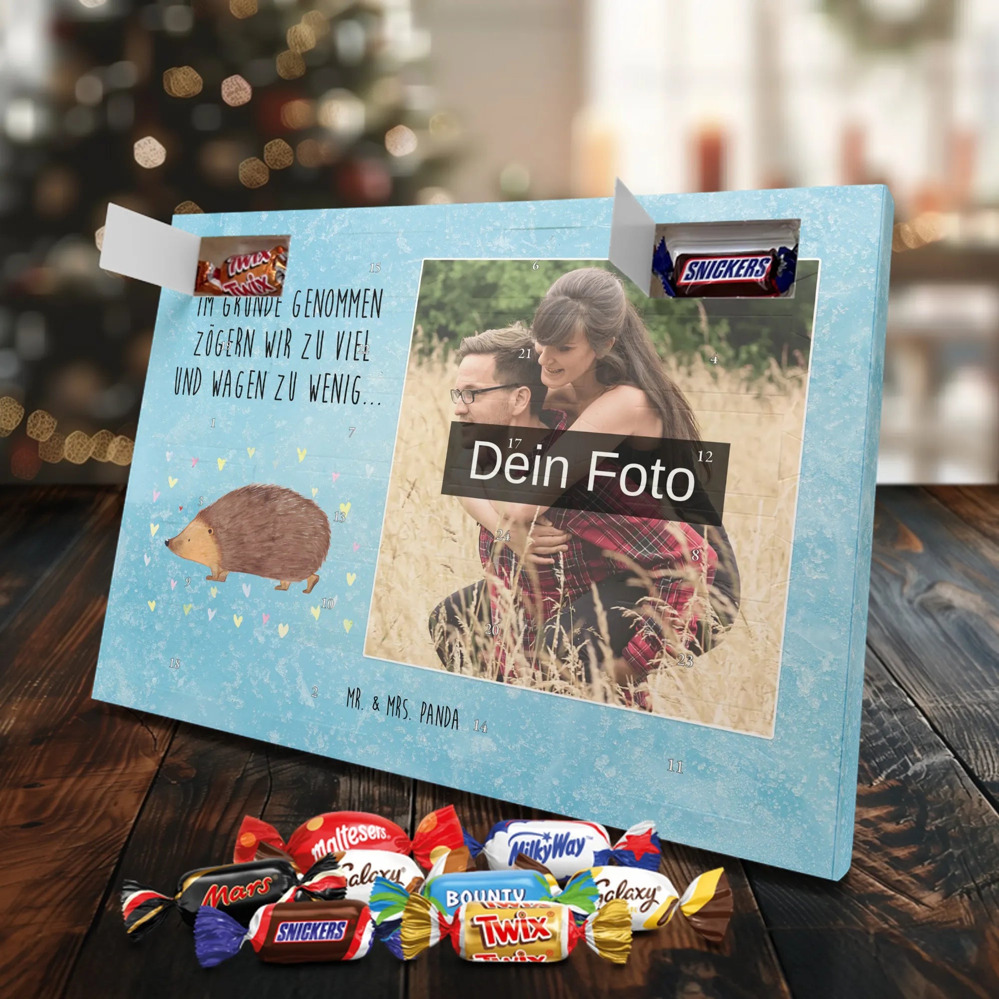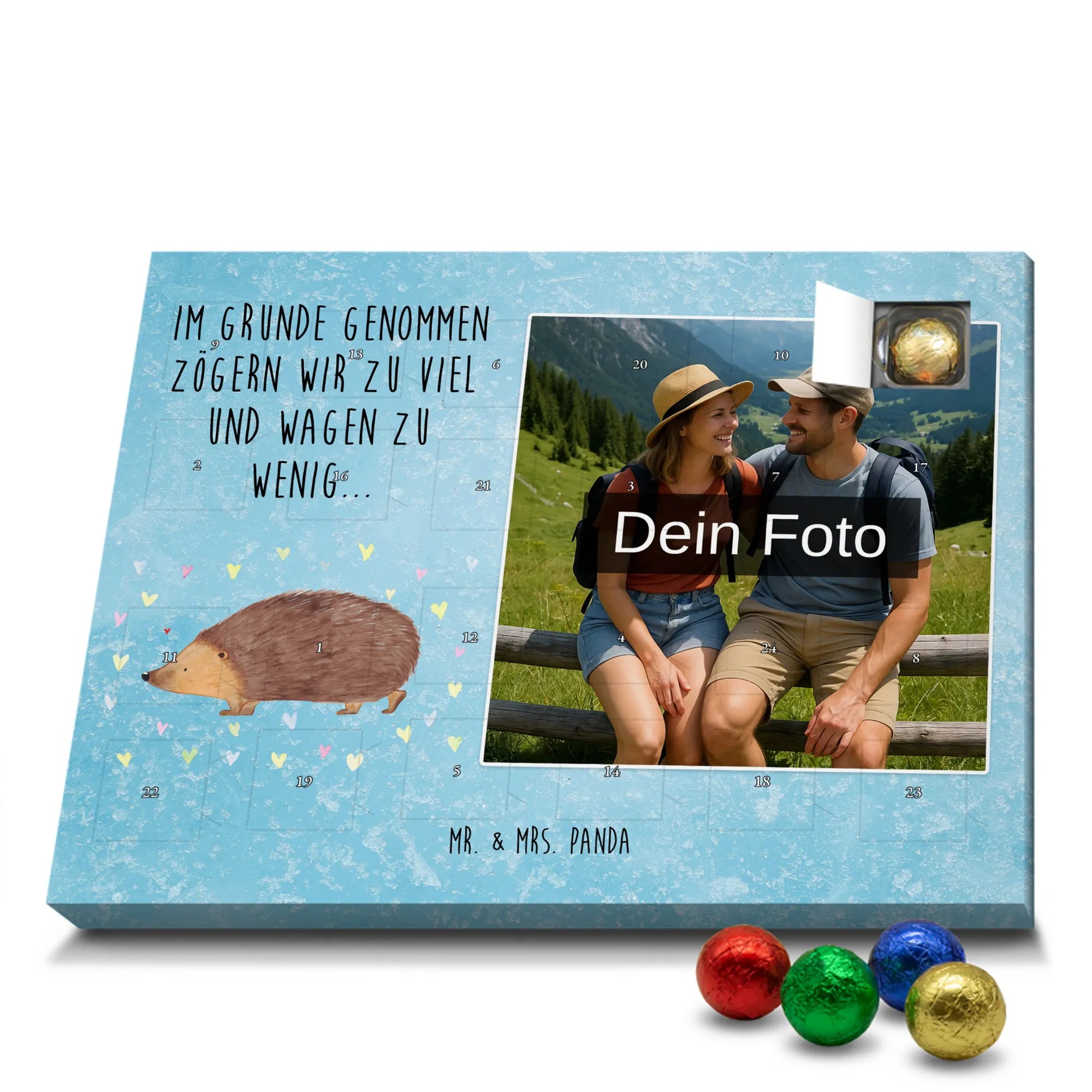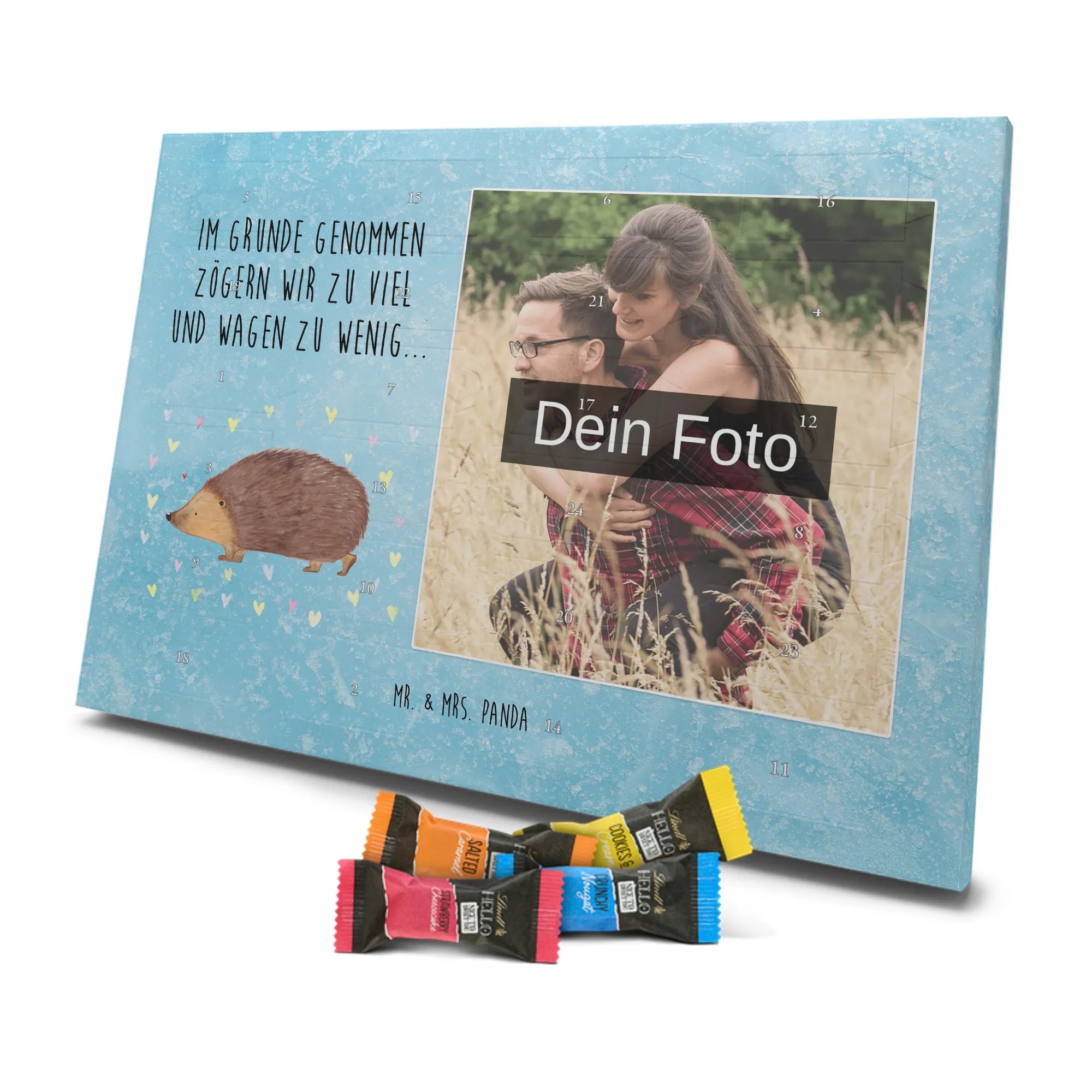 Personalisierter Schoko Foto Adventskalender Igel Herzen - Classic - Eisblau