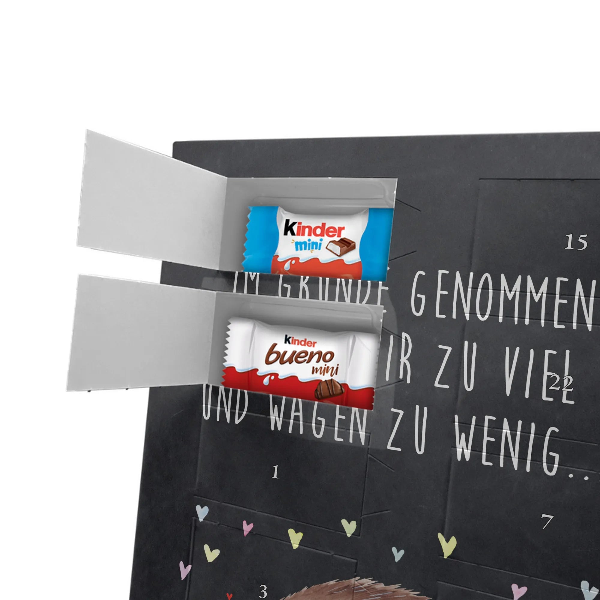 Schoko Foto Adventskalender personalisiert – ein zauberhaftes Produkt von Mr. & Mrs. Panda, das Erinnerungen und Süßigkeiten kombiniert. Gestalte die Vorderseite mit einem persönlichen Foto und überrasche deine Liebsten jeden Tag im Advent. Unsere Designs mit niedlichen Illustrationen und liebevollen Sprüchen runden das Foto perfekt ab. Bitte lade ein hochauflösendes Foto hoch und prüfe den Bildausschnitt, damit das Druckbild optimal wird. Verwende nur Bilder, für die du die Rechte besitzt oder die Freigabe der abgebildeten Personen vorliegt. Beachte: Wir schneiden oder bearbeiten die Fotos nicht; personalisierte Foto-Artikel sind von der Rückgabe ausgeschlossen. Der Kalender besticht durch brillante Druckqualität, seidenmatte Oberflächenveredelung und bedruckte Seitenflächen für ein hochwertiges Finish. Maße: 355 mm x 245 mm x 11 mm. Du kannst den Kalender aufstellen oder ihn an der Wand aufhängen. Gefüllt mit kinder® Schokolade – inklusive kinder® Schoko-Bons, kinder® Bueno mini und kinder® Schokolade mini. Ein warmherziges, persönliches Geschenk mit dem typischen Mr. & Mrs. Panda Flair, das Vorfreude und Geschmack vereint.