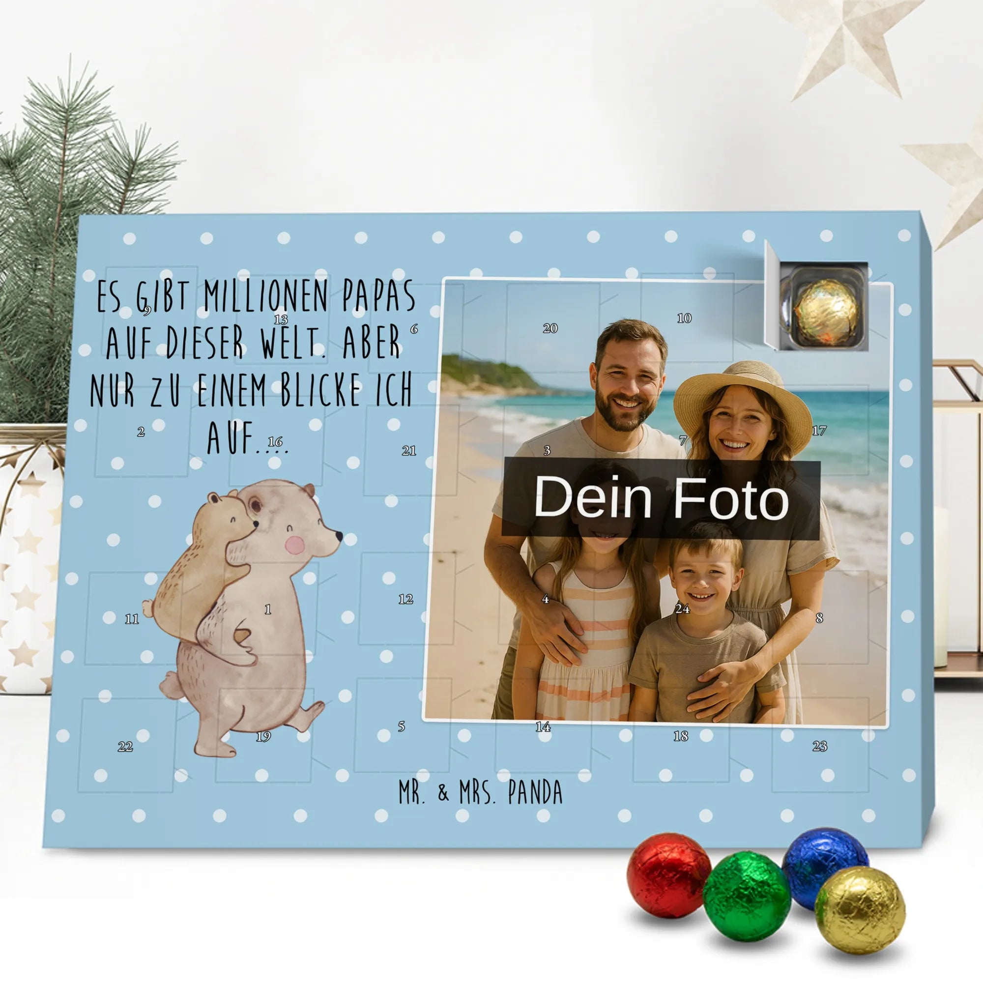 Personalisierter Schoko Foto Adventskalender Papa Bär - Classic - Eisblau