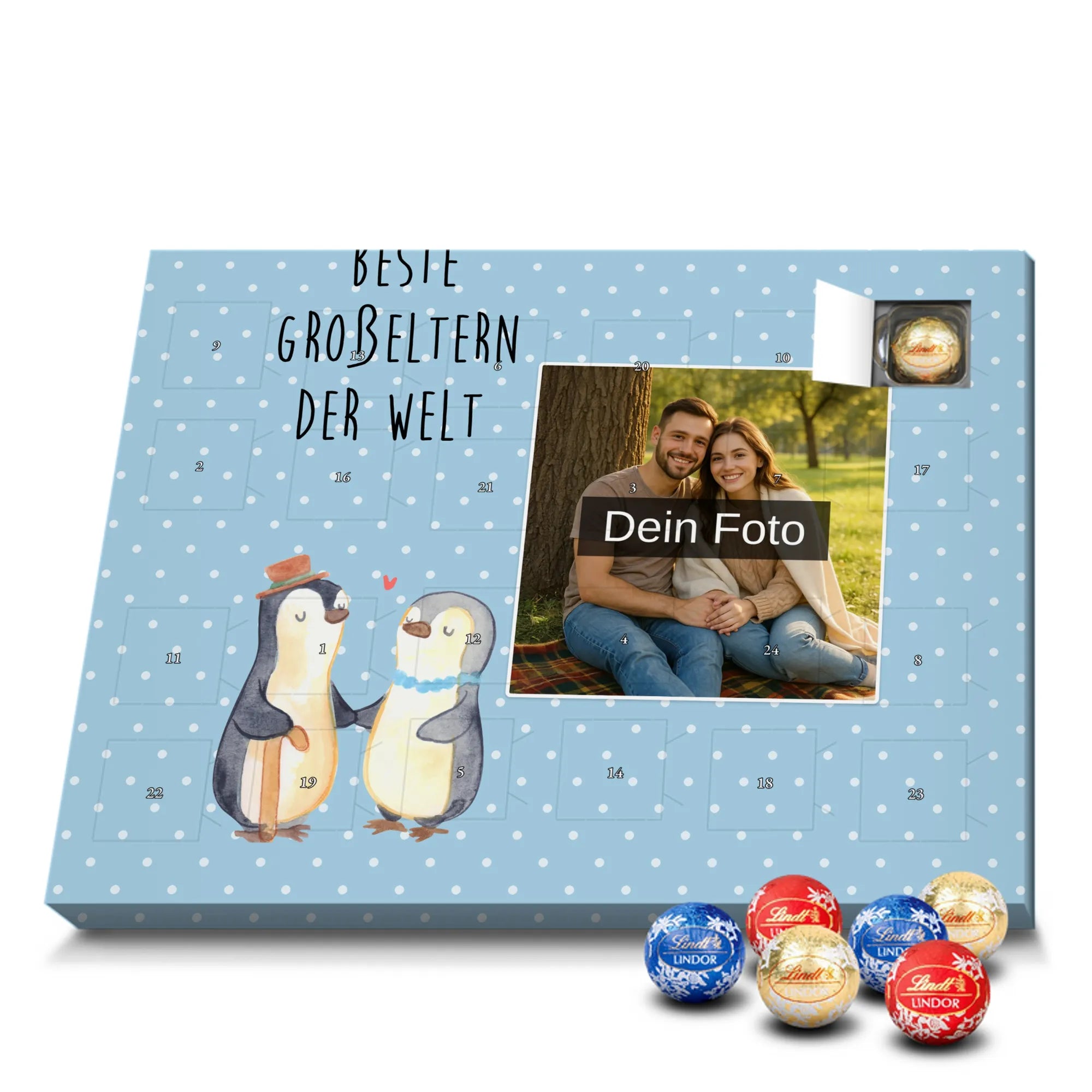 Personalisierter Schoko Foto Adventskalender Pinguin Beste Großeltern der Welt - Lindt HELLO