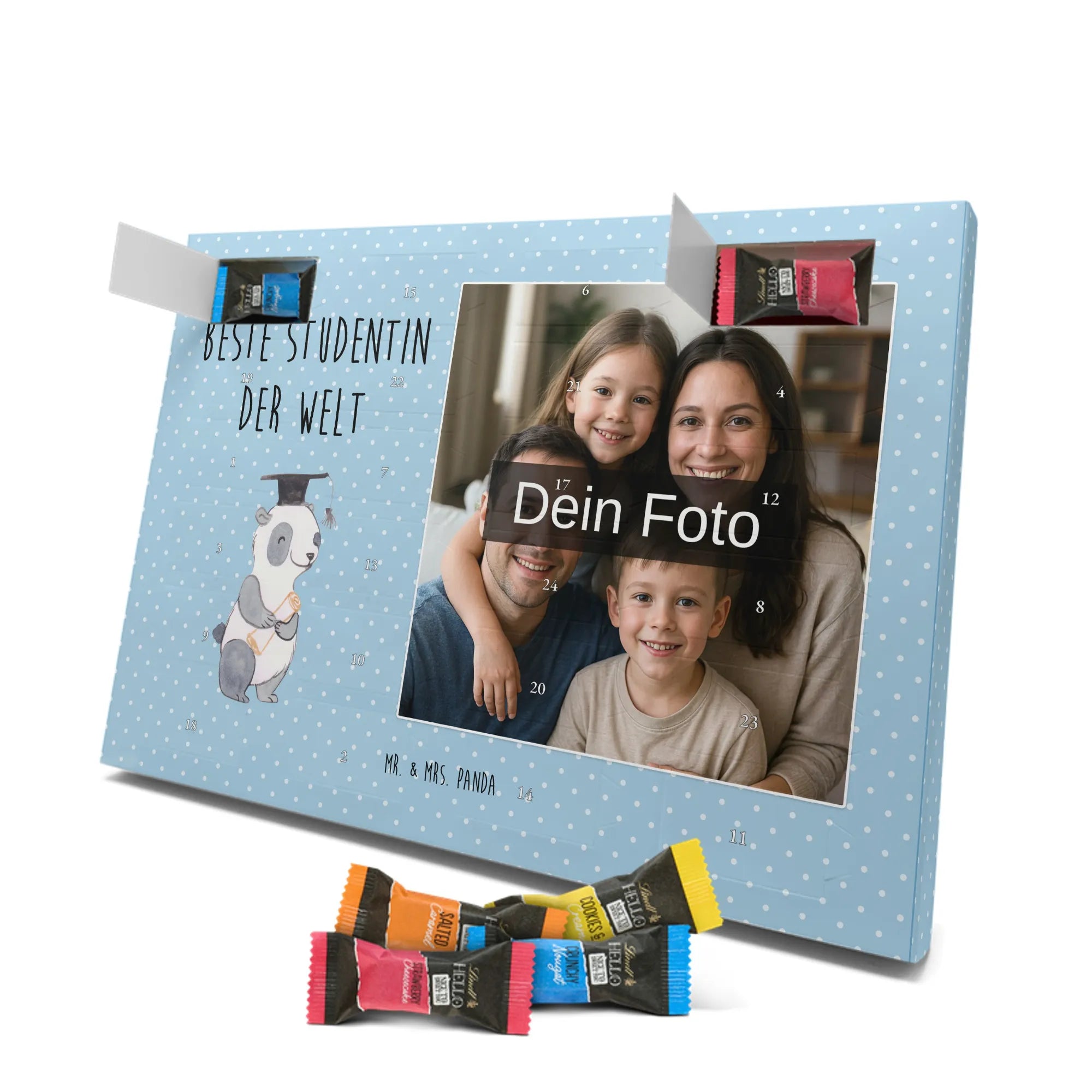 🐼 Personalisiertes Schoko Adventskalender-Design mit Foto und Panda-Sprüchen.